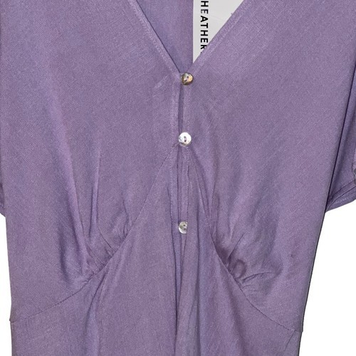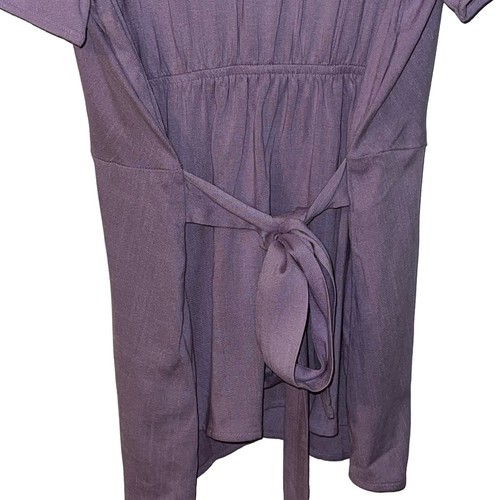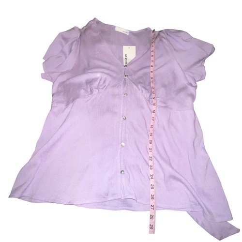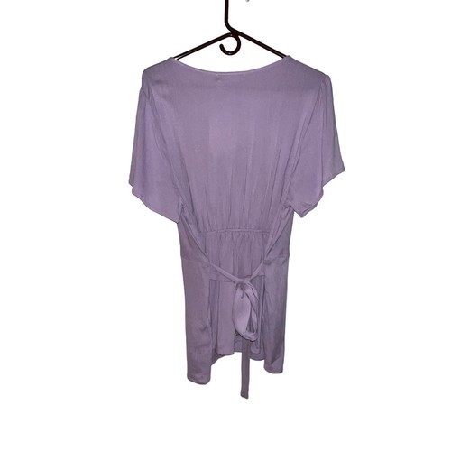 - Heatherly Purple V Neck Button Front Tie Back Short Sleeve Blouse Women Size 2X