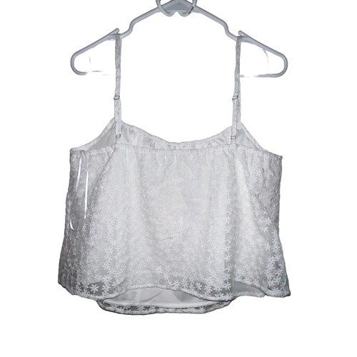 - HEATHERLY TAMAR WHITE FLORAL EMBROIDERED LACE CROPPED CAMI TANK TOP WOMEN LARGE