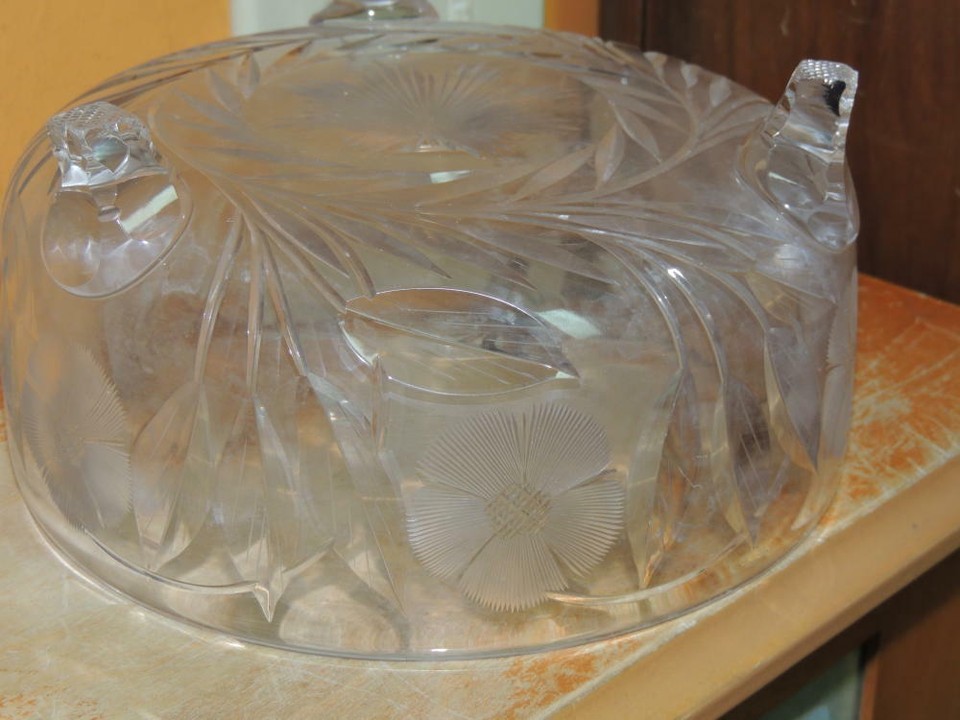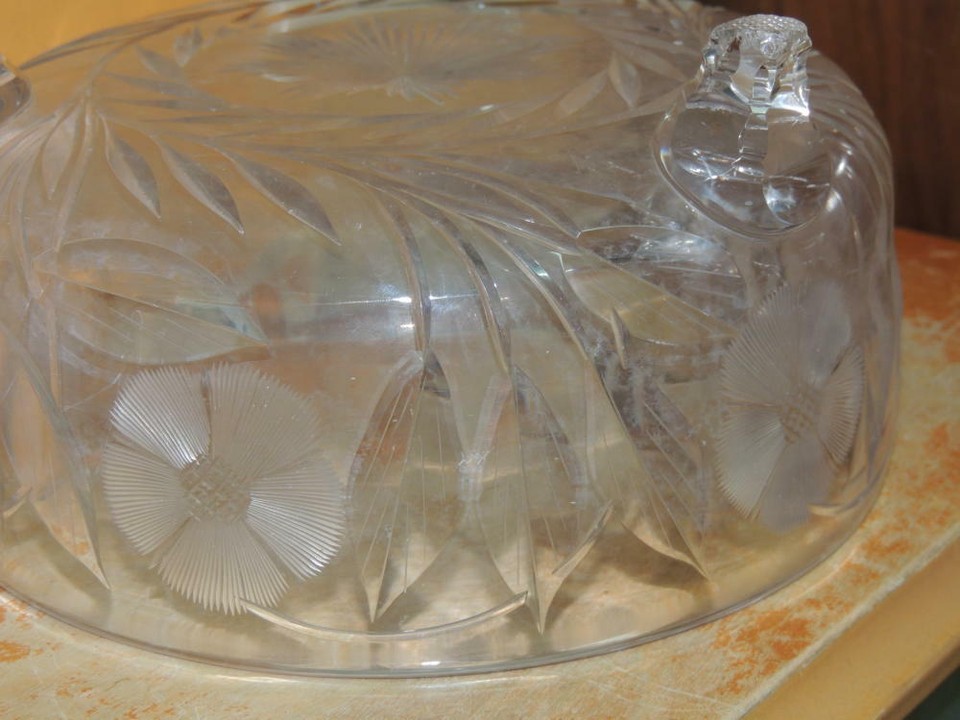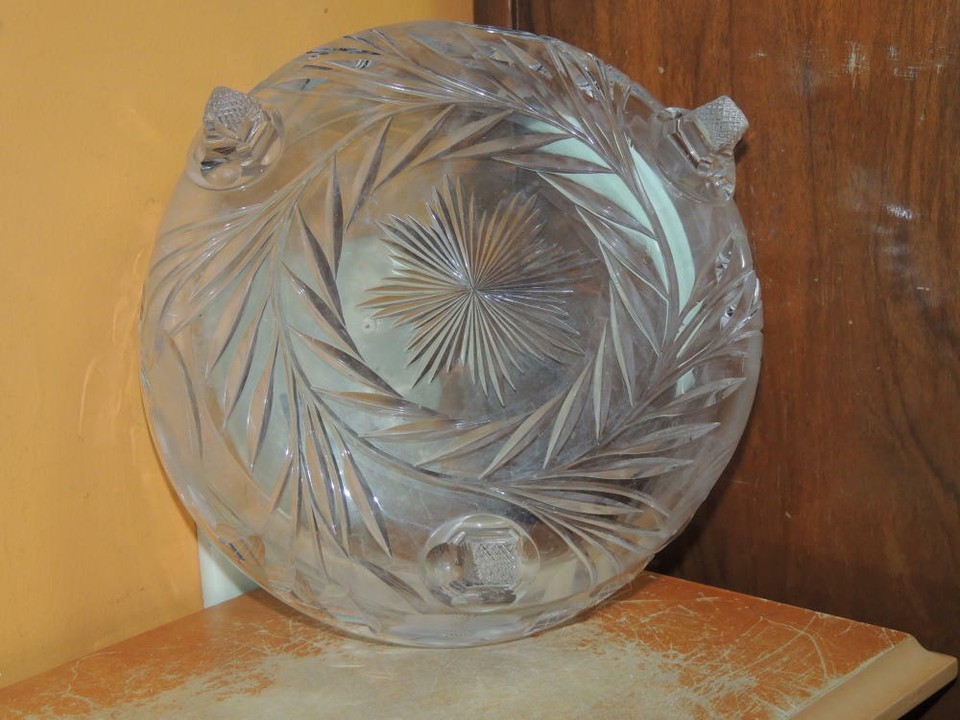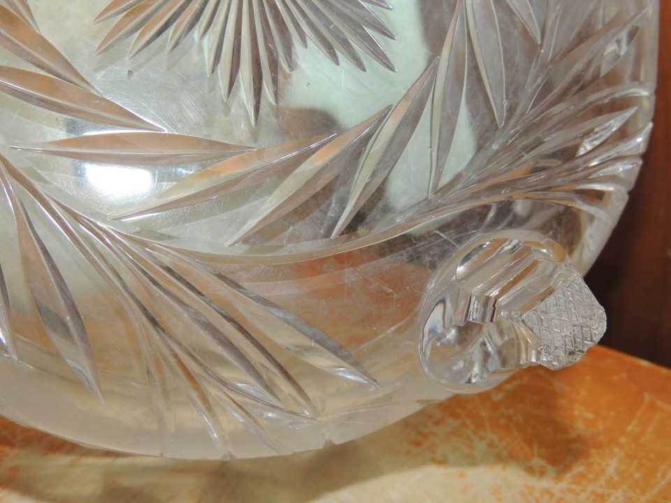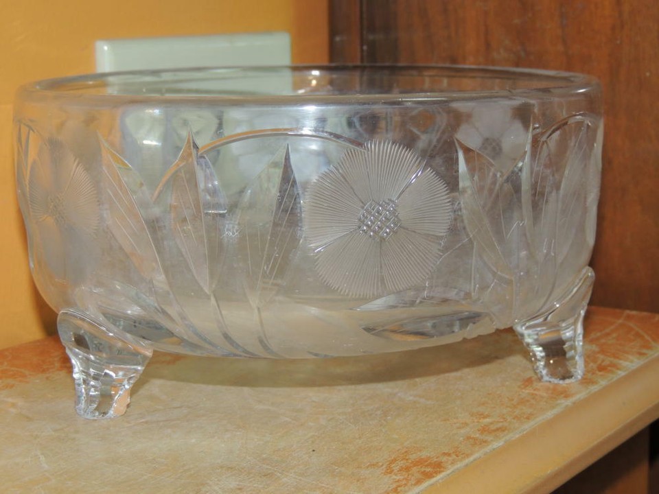 - Heavy Cut Glass Crystal Bowl 7.5" footed floral star starburst antique vintage