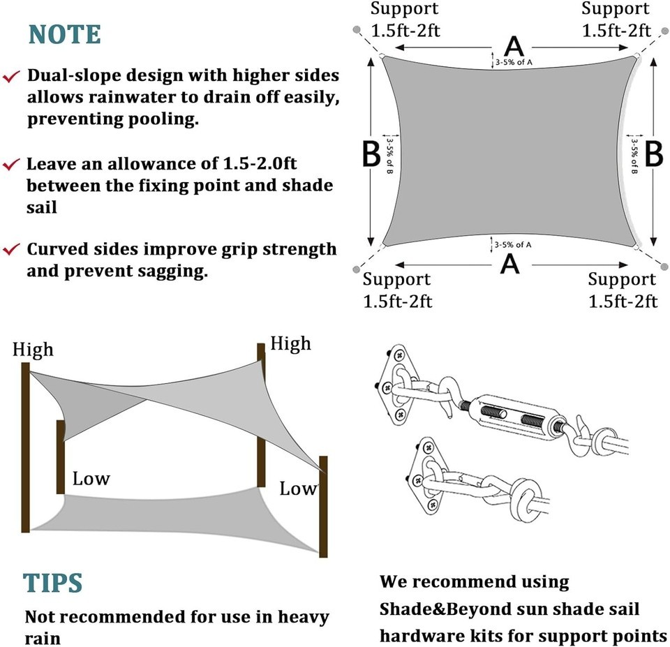Whether for your backyard, porch, garden, or patio, this sun shade sail is a versatile and practical addition to any outdoor area. Remember to remove it during severe weather conditions for optimal maintenance and continued use. Invest in quality shade with our Sun Shade Sail today!