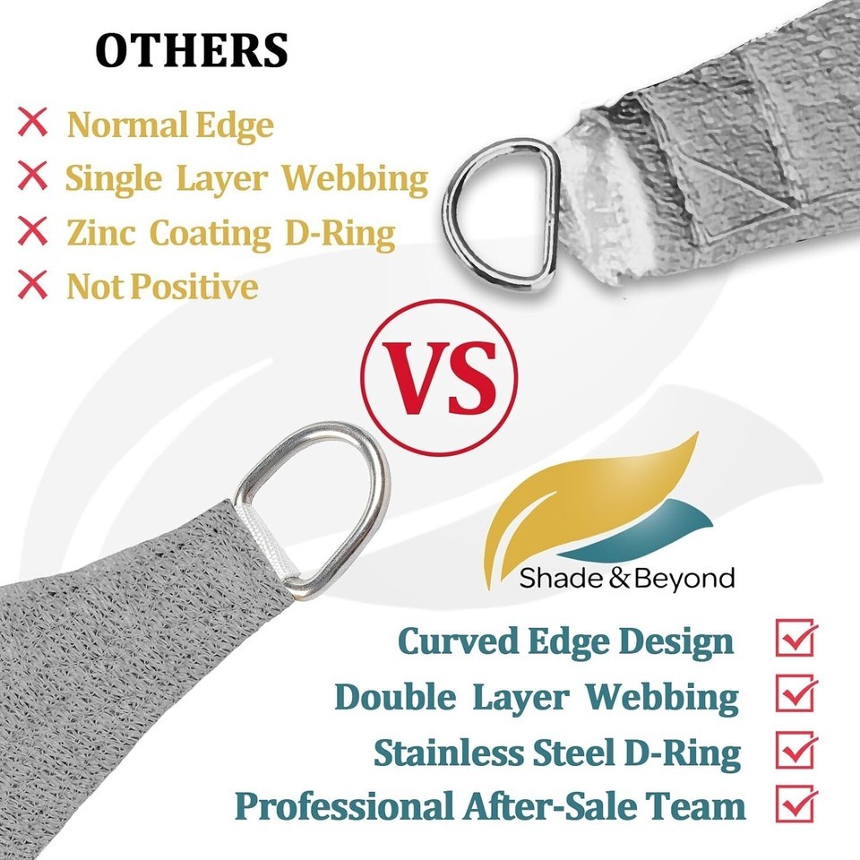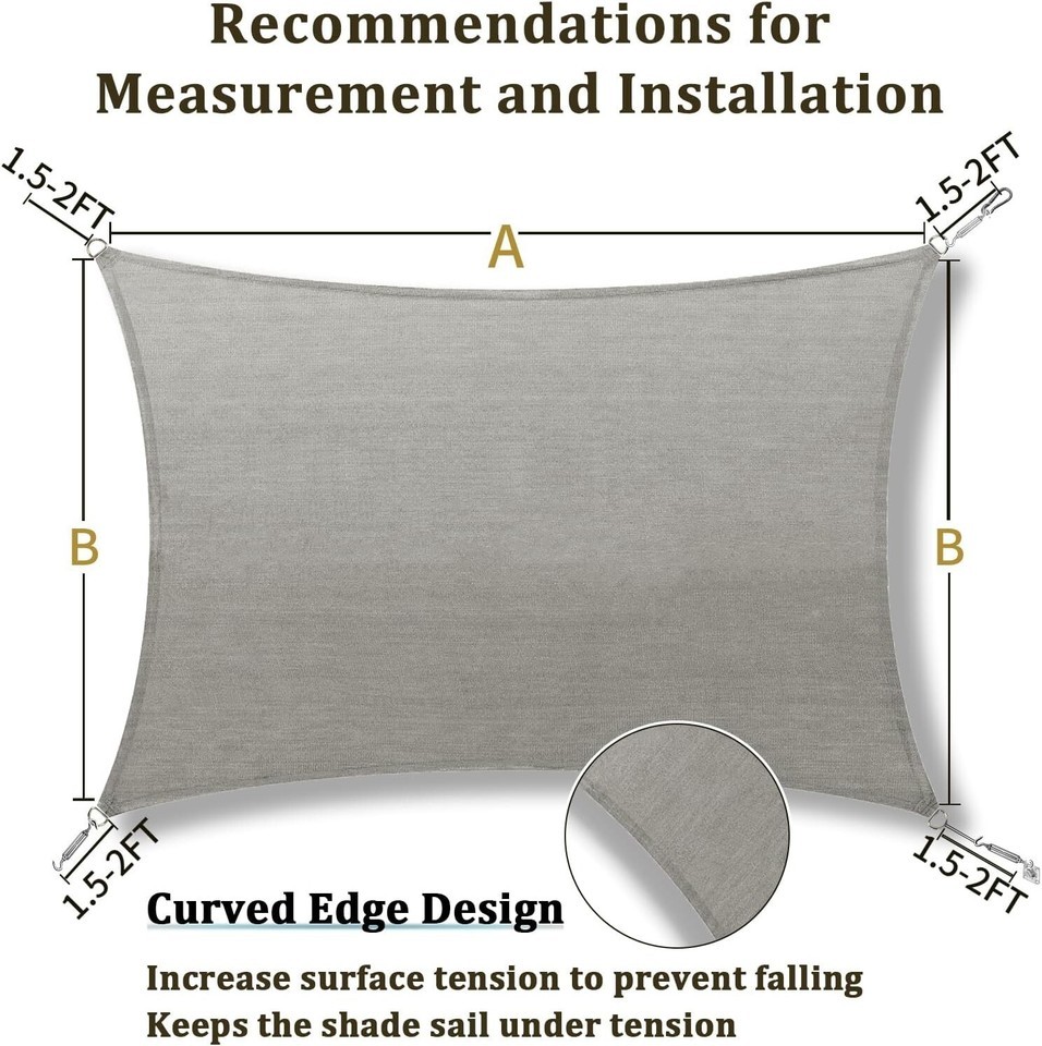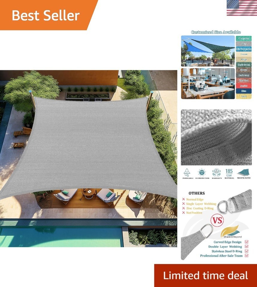 Enhance your outdoor spaces with our Heavy-Duty Sun Shade Sail in Light Grey, designed to provide UV protection and cool shade for your backyard. Made with high-quality materials and durable stainless steel D-rings, this sun sail is built to last and guard against harmful UV rays. The breathable fabric creates a comfortable environment while blocking out 85%-88% of sunshade.