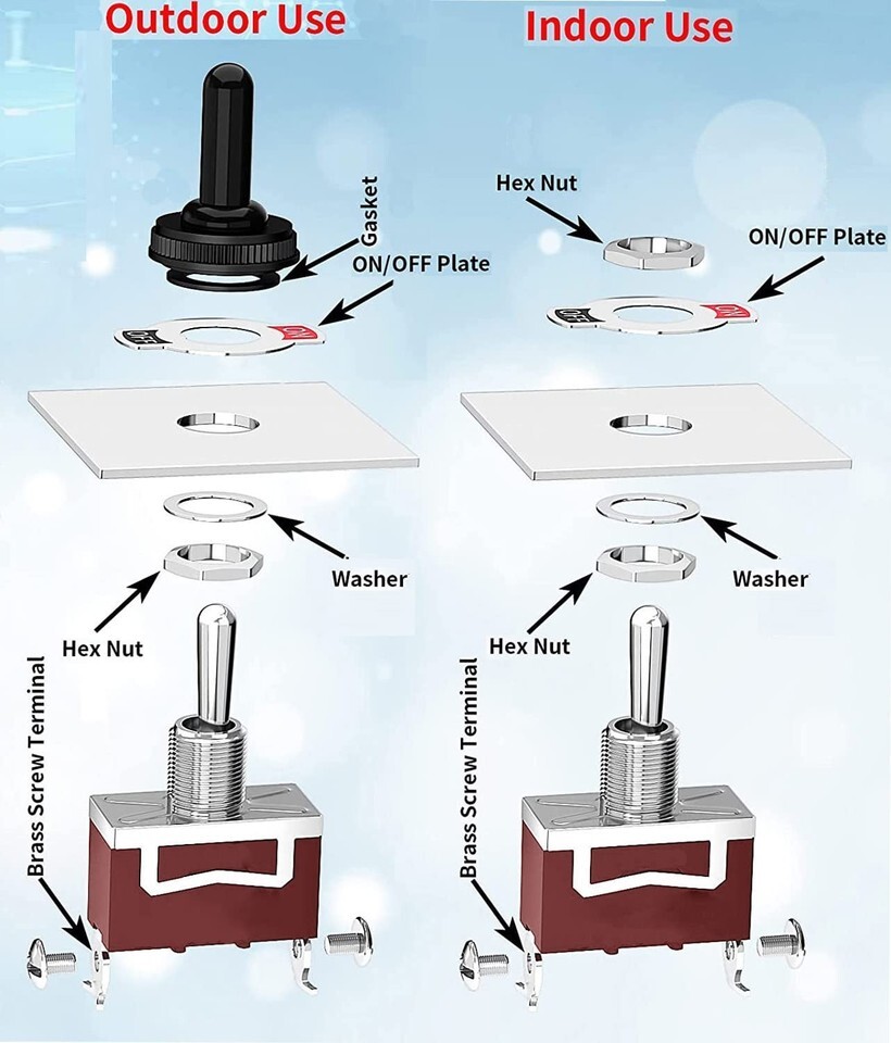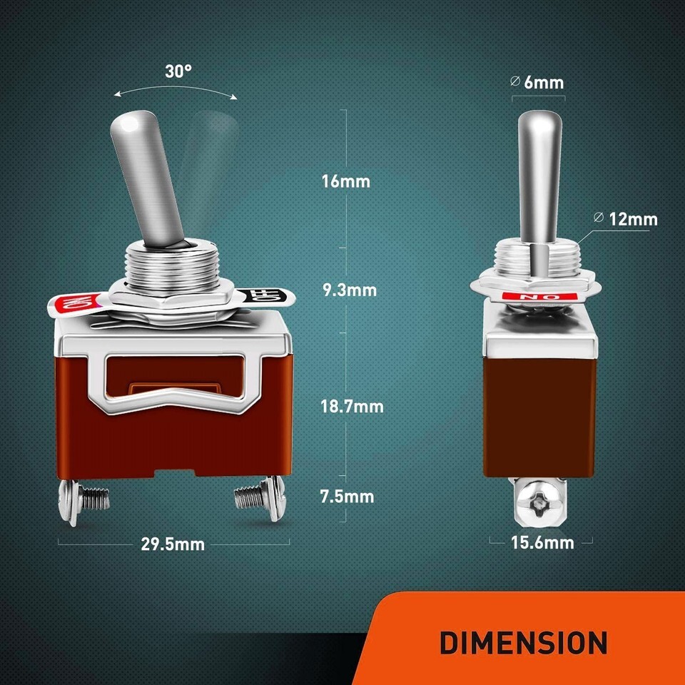 Exceptional Ratings: Rated for performance with 15A at 12V DC, 10A at 24V DC, 20A at 125V AC, and 10A at 250V AC, this heavy-duty toggle switch meets diverse electrical requirements.