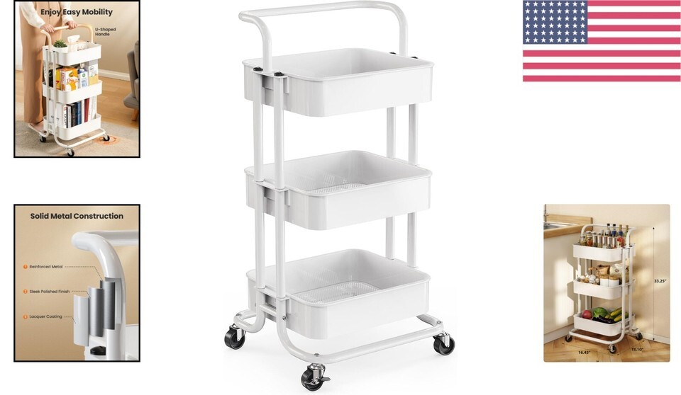 - Heavy Duty 3-Tier Utility Cart - Multifunctional Organizer with Smooth Wheels