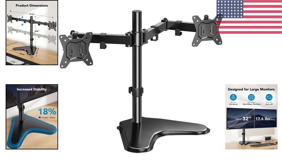 - Heavy-Duty Free-Standing Dual Monitor Mount - 13-32” with Cable Management