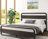 - Heavy Duty Full Size Round Metal Platform Bed with Black Wood Headboard