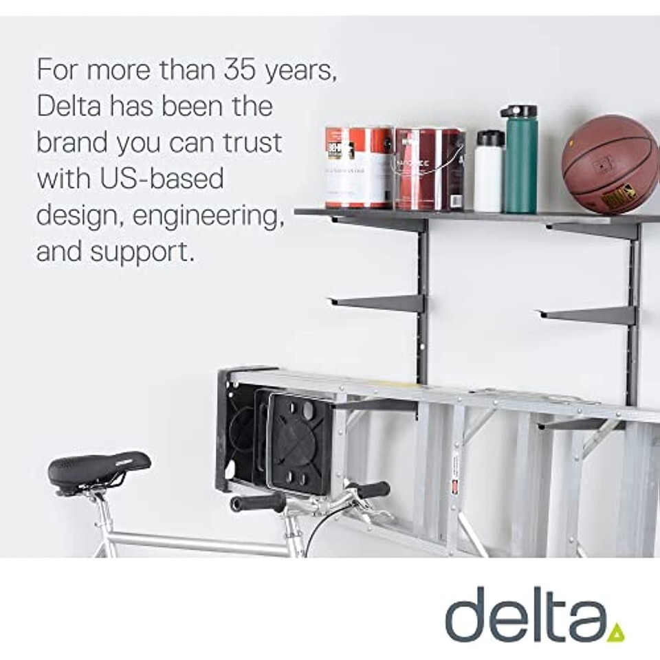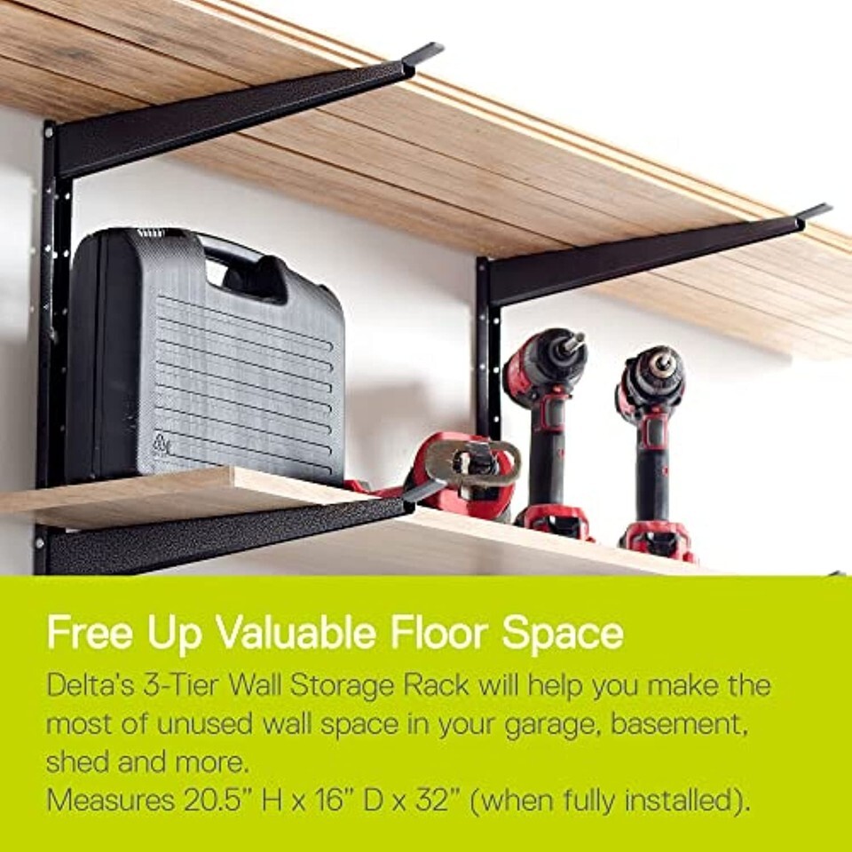 Free Up Valuable Floor Space: Delta?s Wall Storage Rack will help you make the most of unused wall space in your garage, basement, shed and more. This durable, 3-tier shelving unit will safely store items horizontally for versatile storage solutions. Wall-mounted storage allows you to create custom solutions and provides extra space storage, even in the smallest space.