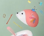Description: Large cute carton hedgehog clip holder and office supplies storage. Magnet on top will hold clips, open hedgehog to store other supplies like rubberbands, tacks, twist ties, hair accessories, staples, jewelry, makeup, etc. Pink and white, black eyes and nose.