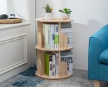 Heehee Wooden Rotating Bookshelf 360 Display Floor Standing Bookcase, 2-Tier