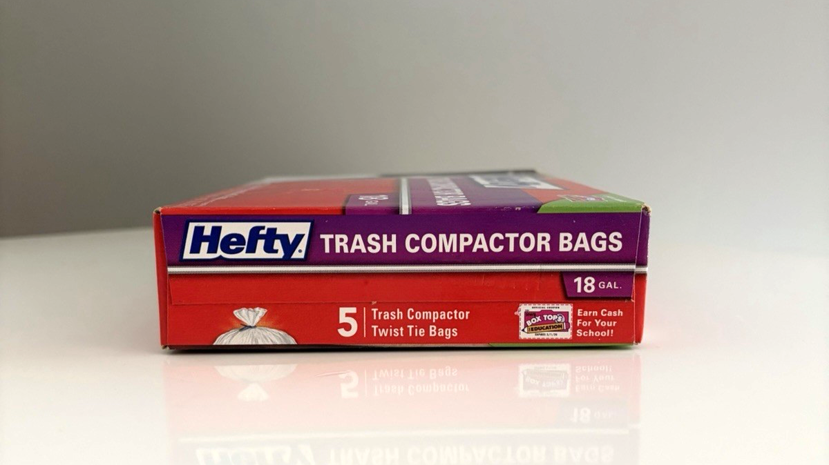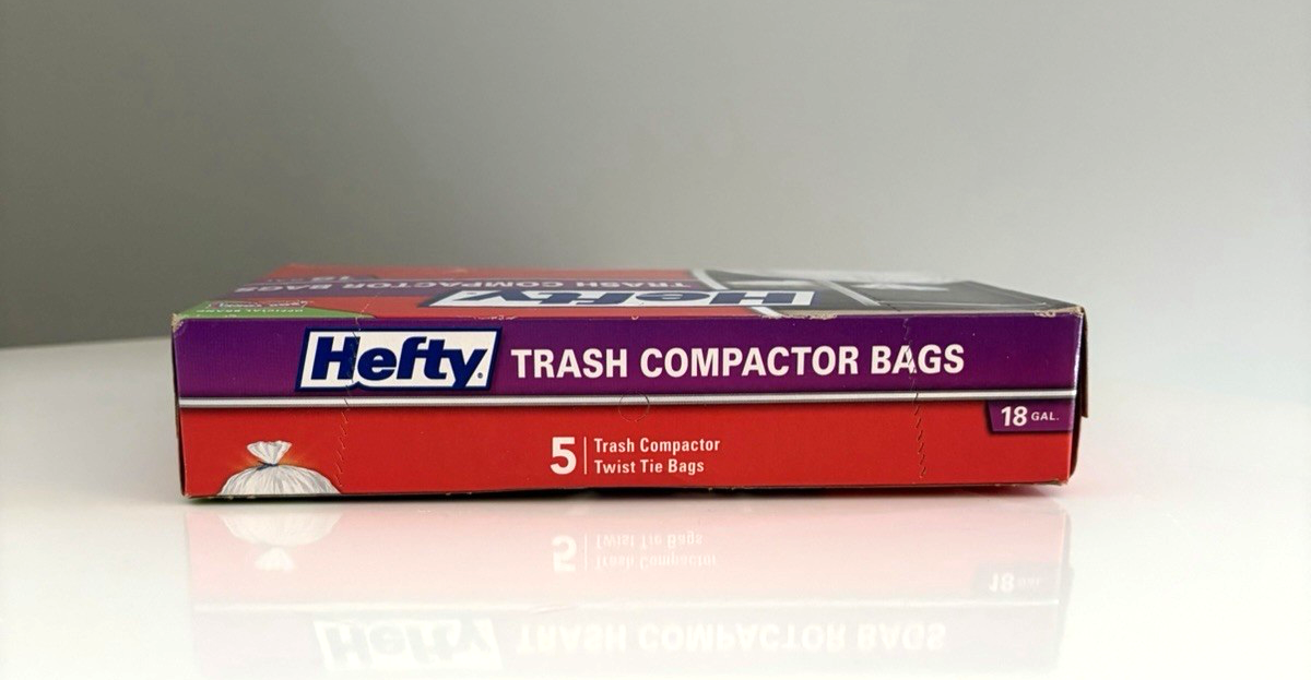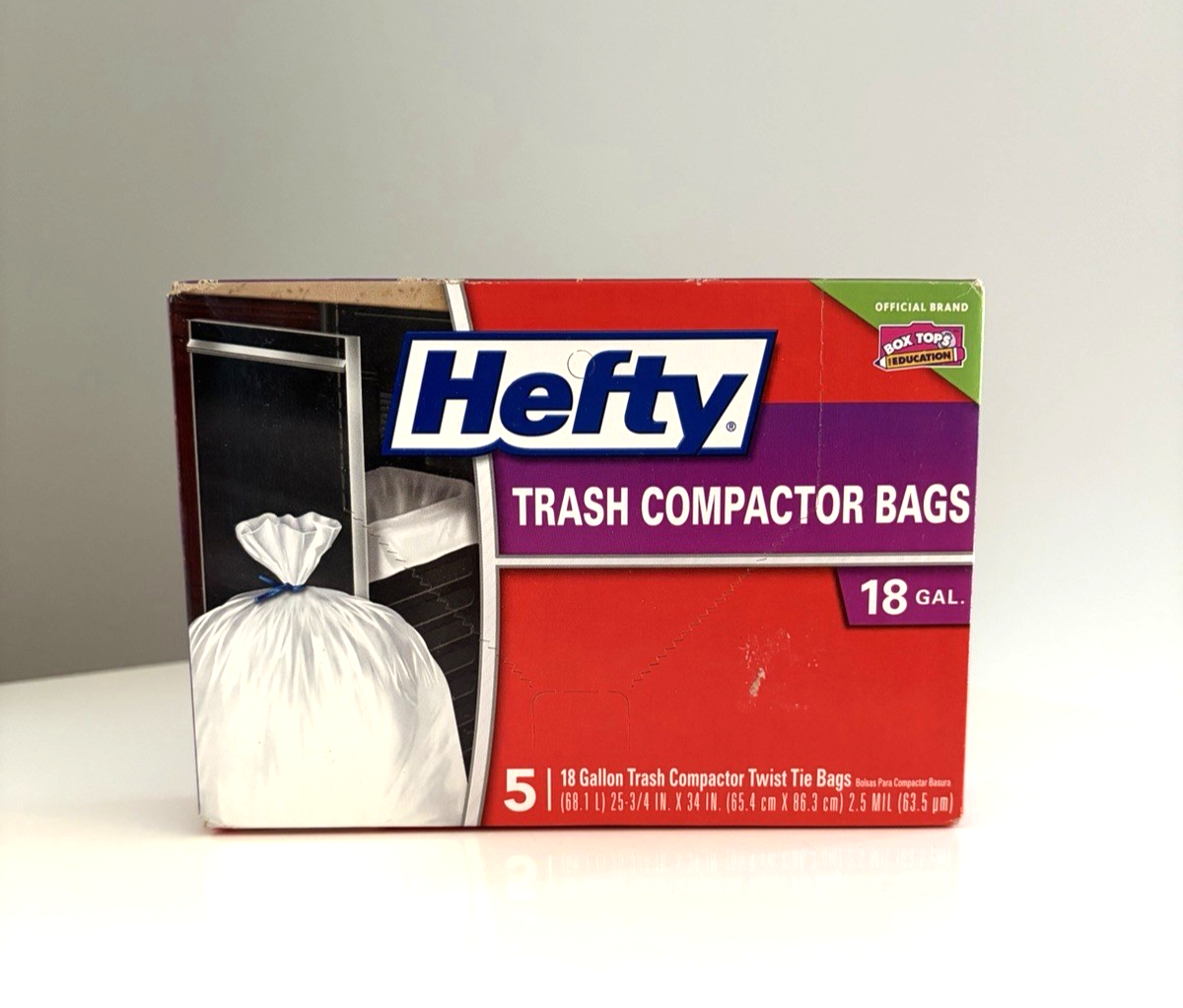 - Hefty Trash Compactor Bags with Twist Ties, 5 Count of 18 GAL Bags, 1 Box New