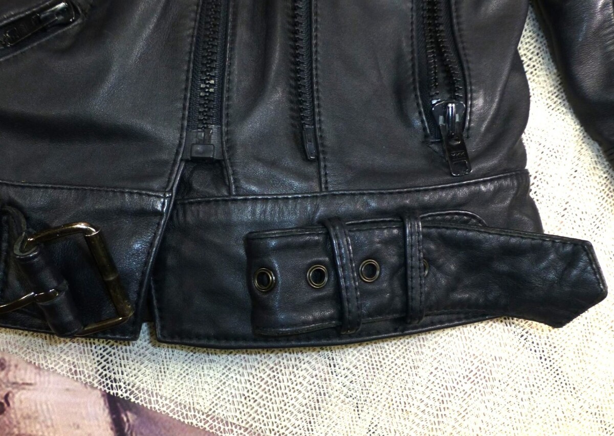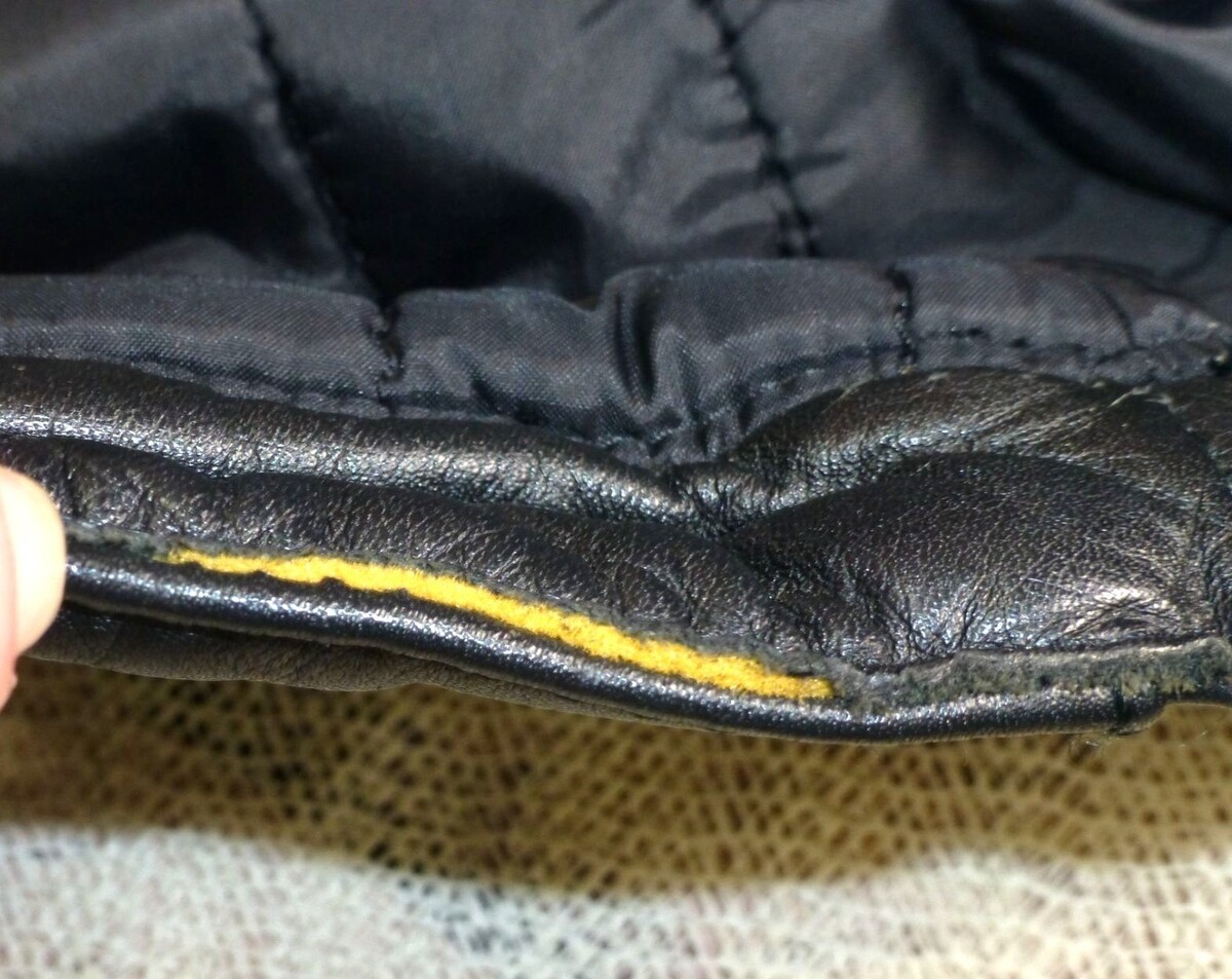 Good condition with minor wear on leather, adds character. Measurements: Chest width = 19", Body length = 23", Sleeve length = 23".