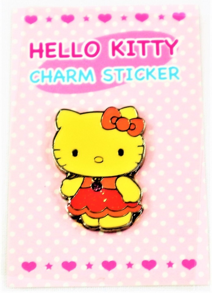 - Hello Kitty Charm Sticker | Metallic Sticker Kitty with pink dress.