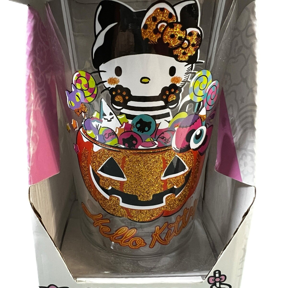 - Hello Kitty Halloween Glass Tumbler 16oz Glitter Pumpkin Candy Sanrio
