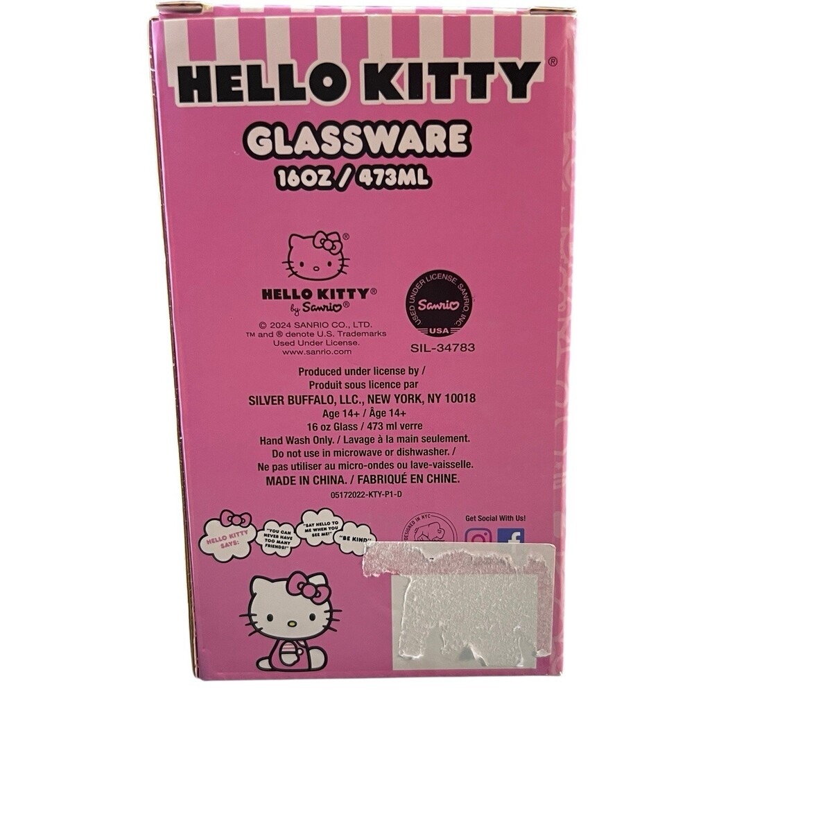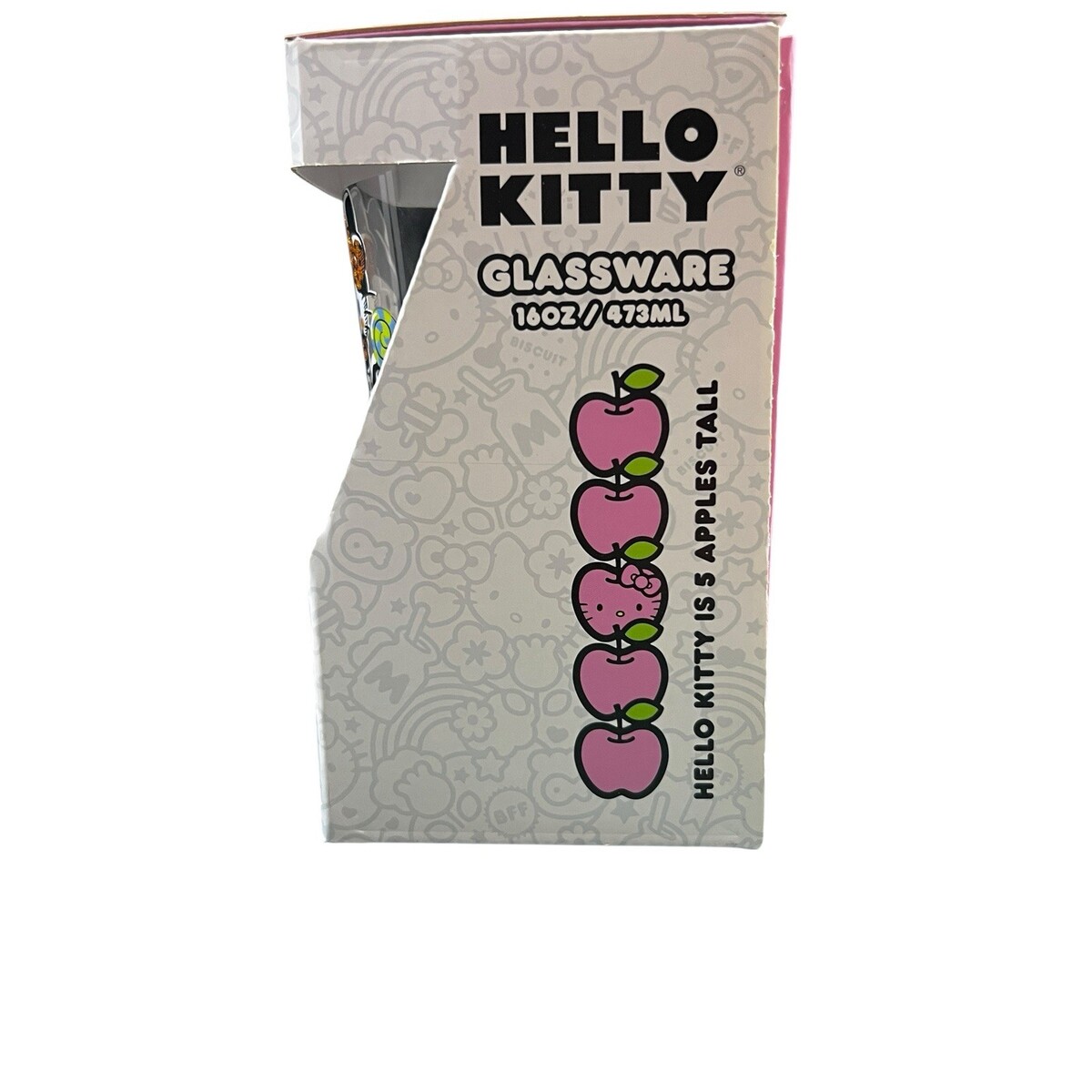 Celebrate spooky season in style with this Hello Kitty Halloween glass tumbler (16oz/473ml). Features Hello Kitty dressed in black + gold with a glittery pumpkin candy bucket overflowing with sweets. Official Sanrio glassware, perfect for sipping your favorite drinks or displaying as festive decor. Bright glitter accents make it a standout piece for Halloween parties, collectors, or Hello Kitty fans. Comes in original packaging. A fun mix of cute, creepy, and collectible that adds instant charm to your holiday.