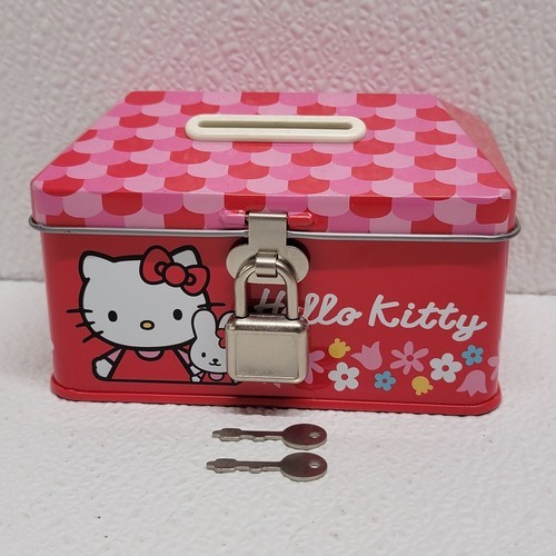 Hello Kitty Metal Treasure Chest Lock And Key Bank 2000 Sanrio Made In Japan. Images show actual item that will ship.