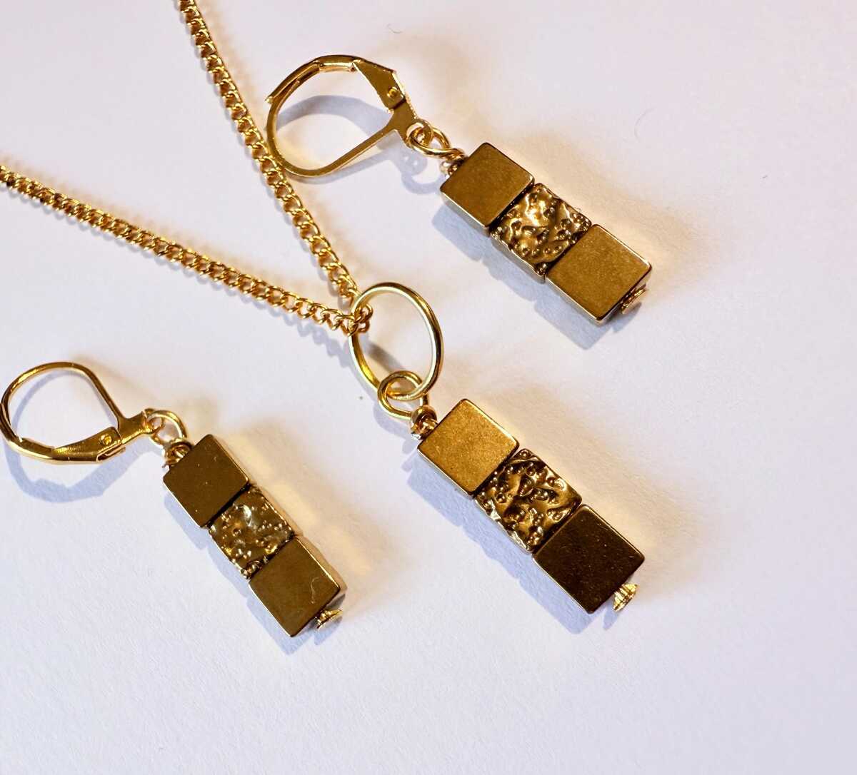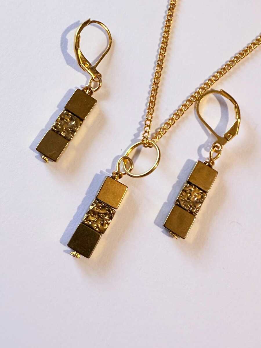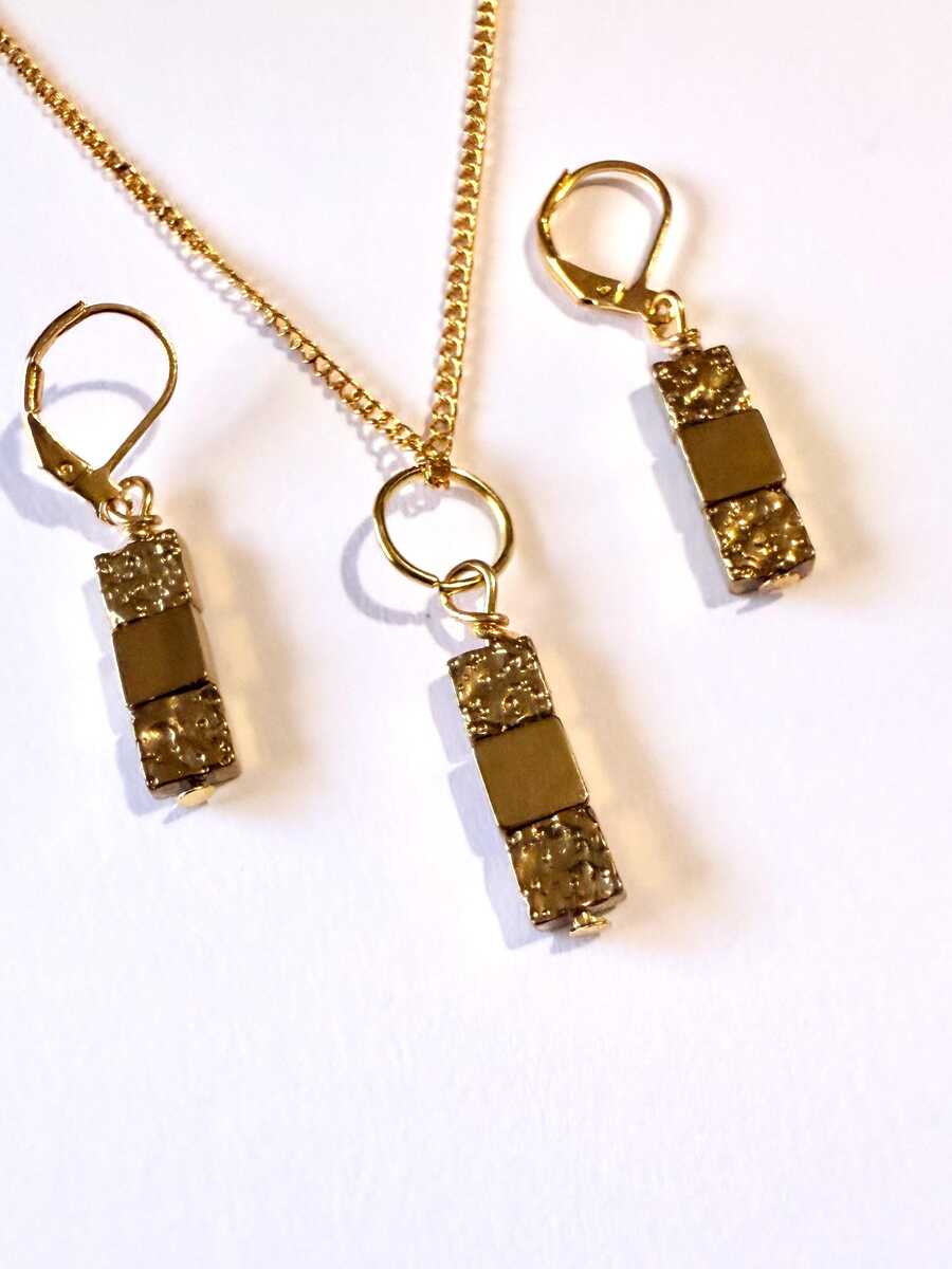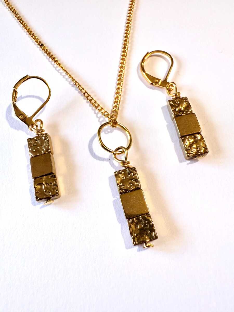 - Hematite hammered gold jewelry set gold jewelry set boho set hematite earrings