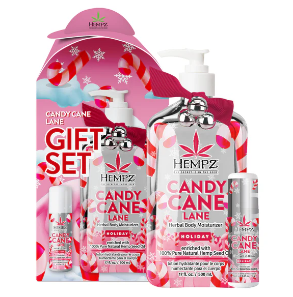 Hempz Candy Cane Lane Gift Set - 17oz Moisturizer & Herbal Lip Balm