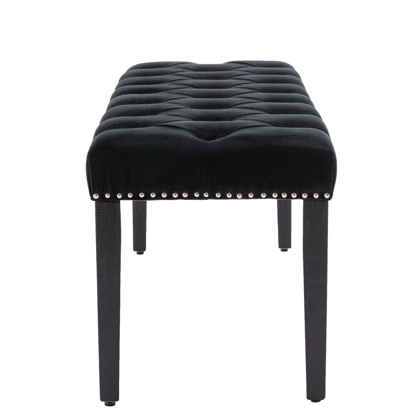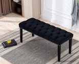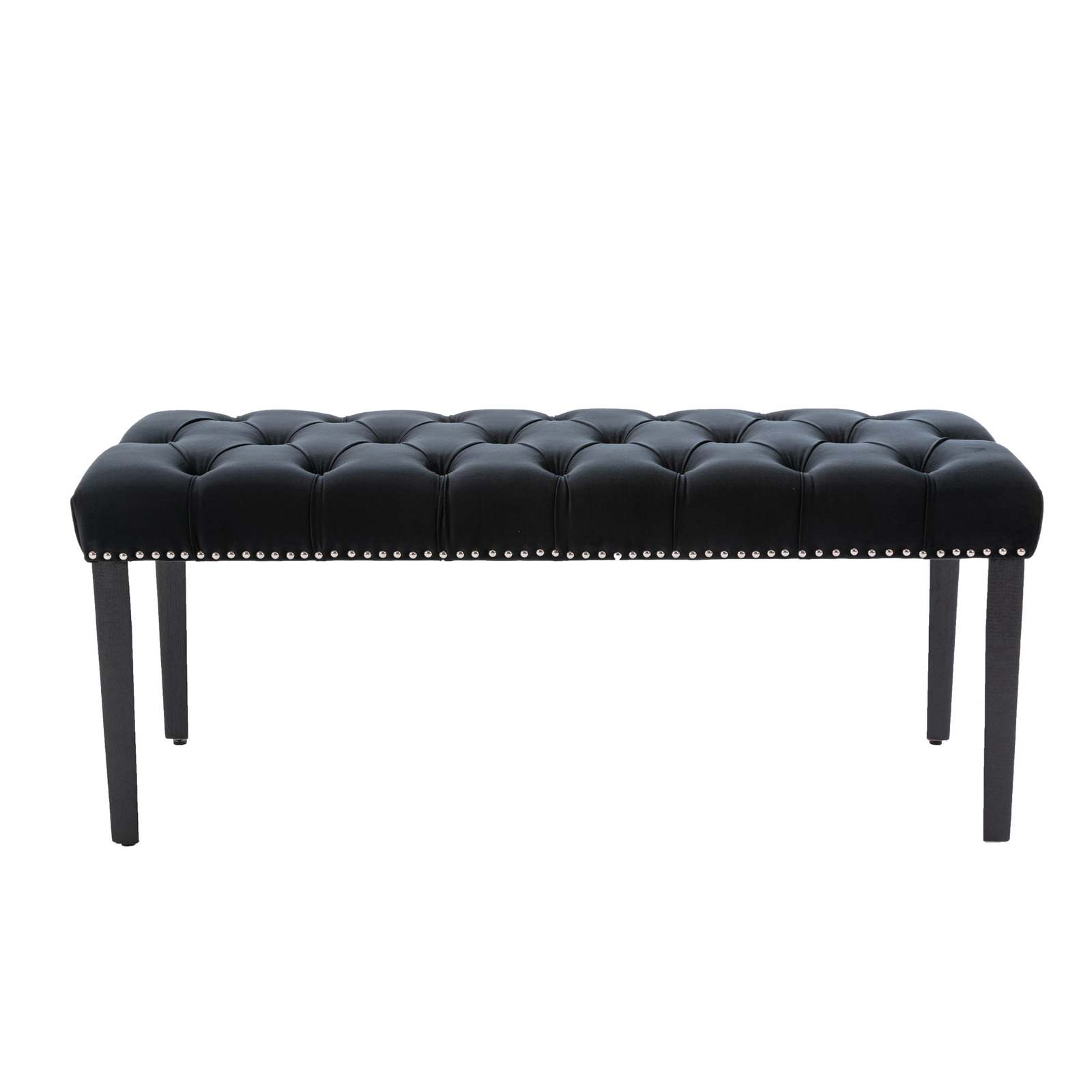 - Heng Ming Black Velvet Tufted Upholstered Bench Ottoman for Entryway
