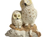 Herco Gift Professional Snowy Owl Figurine ? Parent Baby on Branch, Wildlife Decor, 1990s?2000s
