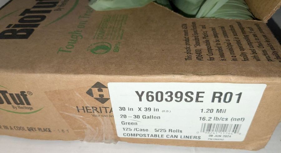 - Heritage Biotuf Compostable Can Liners, 30 gal, 1.2 mil, 30" x 39", Green, 125/C