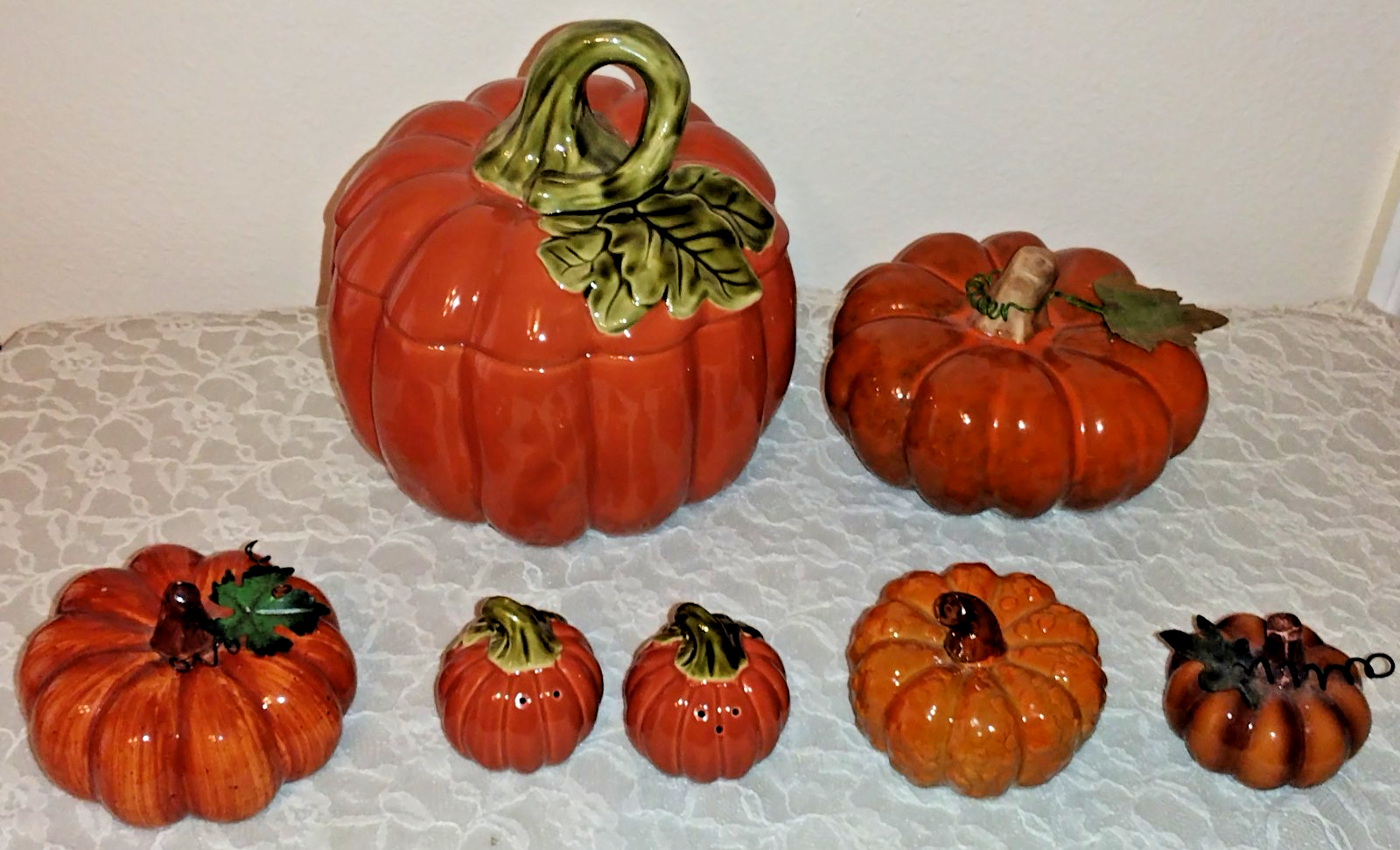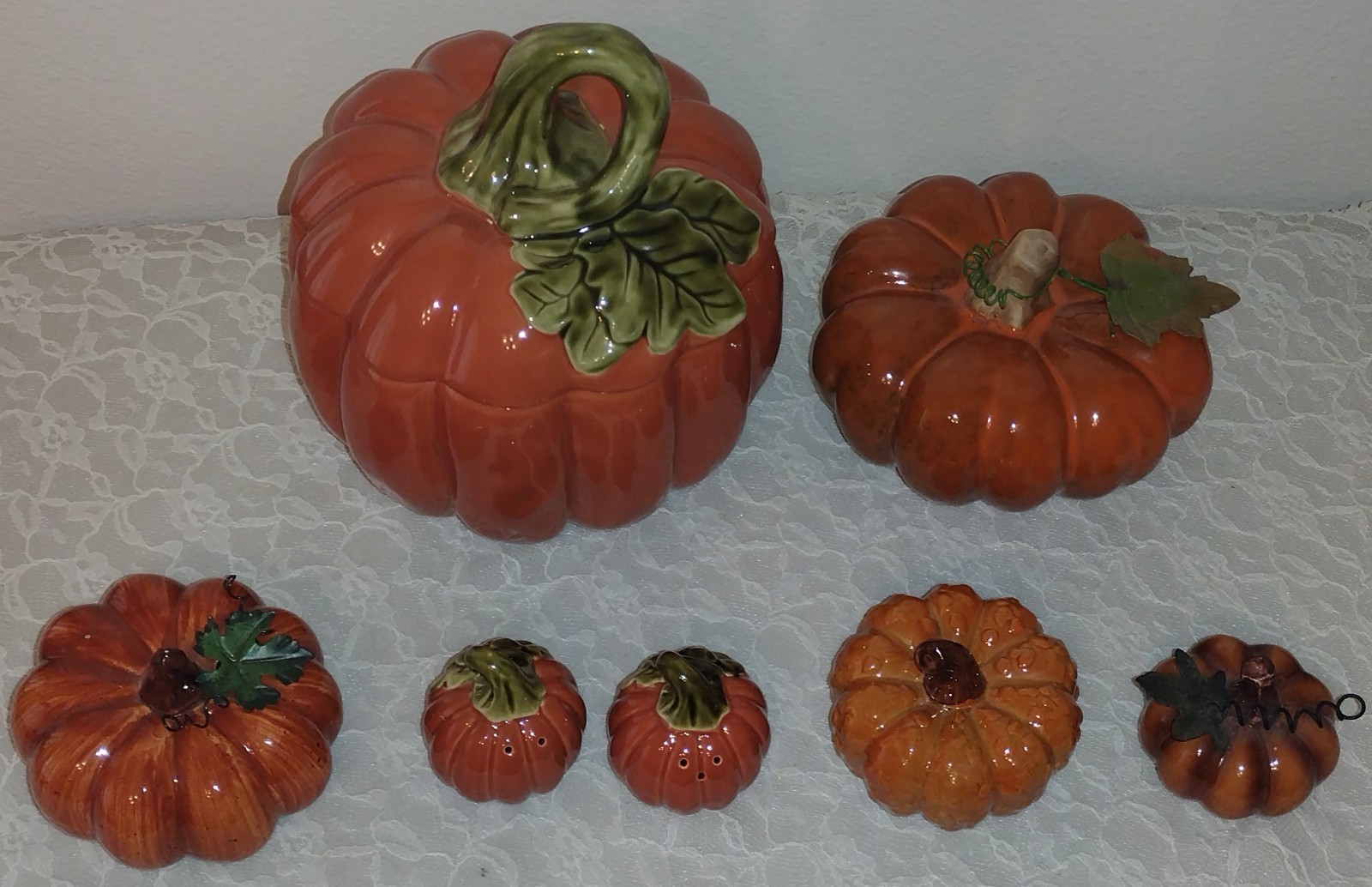 - Heritage Collection Harvest Pumpkin Dish Salt & Pepper 7pc Lot Fall/Autumn