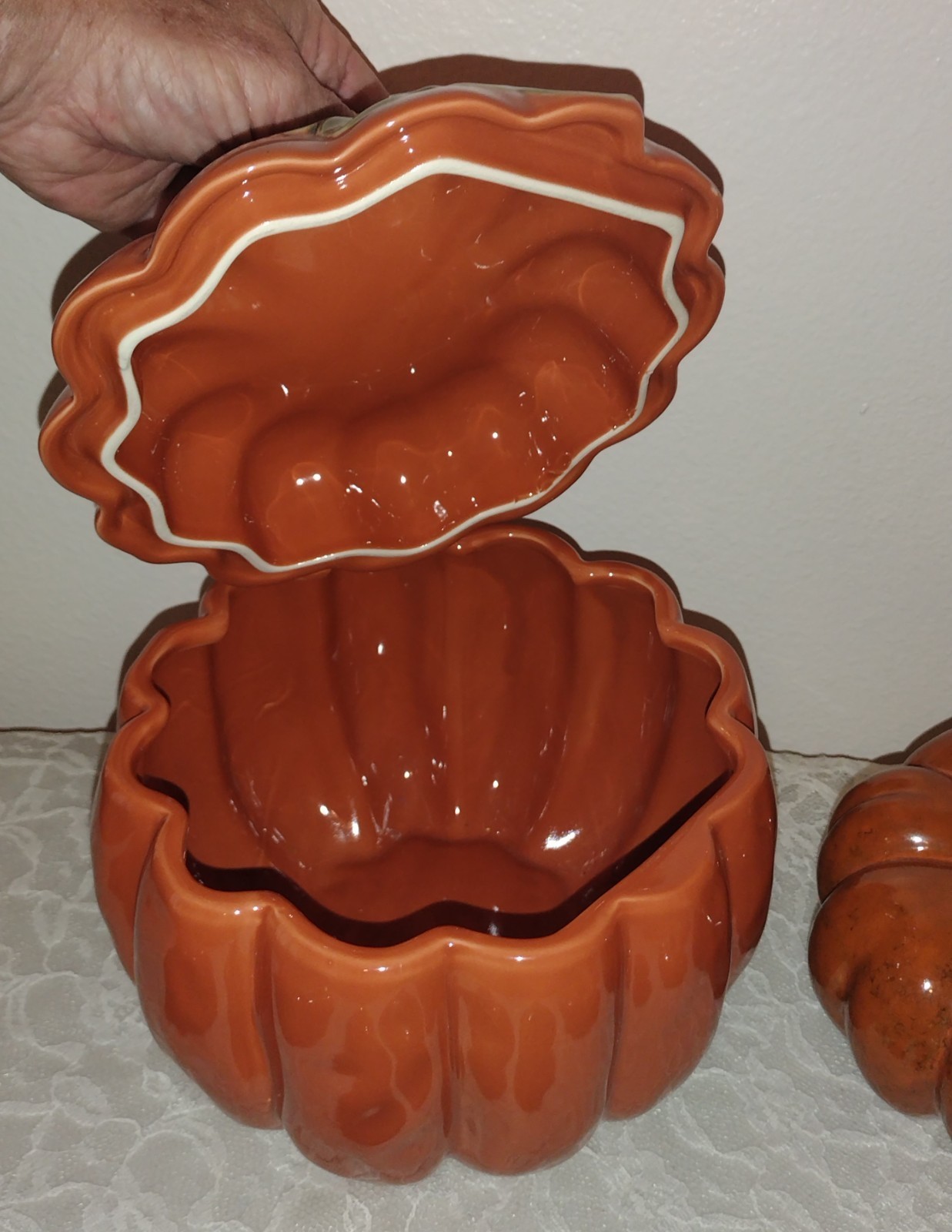 Pre-Owned Heritage Collection Harvest Pumpkin Dish Salt Pepper 7pc Lot Fall/Autumn. You get the 7 piece set as shown perfect for decorating at Thanksgiving. The large lidded pumpkin is from Better Homes with matching salt pepper shakers. We have many more Fall/Autumn pieces for sale in our store so be sure to check them out. Ships insured.