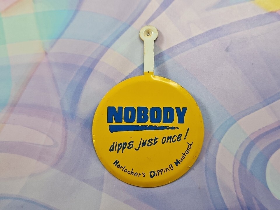 - Herlocher's Dipping Mustard "Nobody Dipps Just Once" Tab Button, 2.125'' Vintage