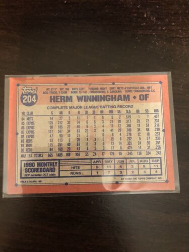 HERM WINNINGHAM CINCINNATI REDS 1991 TOPPS "40 YEARS OF BASEBALL" CARD #204. Condition is Used. Shipped with Standard Envelope for Trading Cards, Stamps, Postcards Coins up to $20.