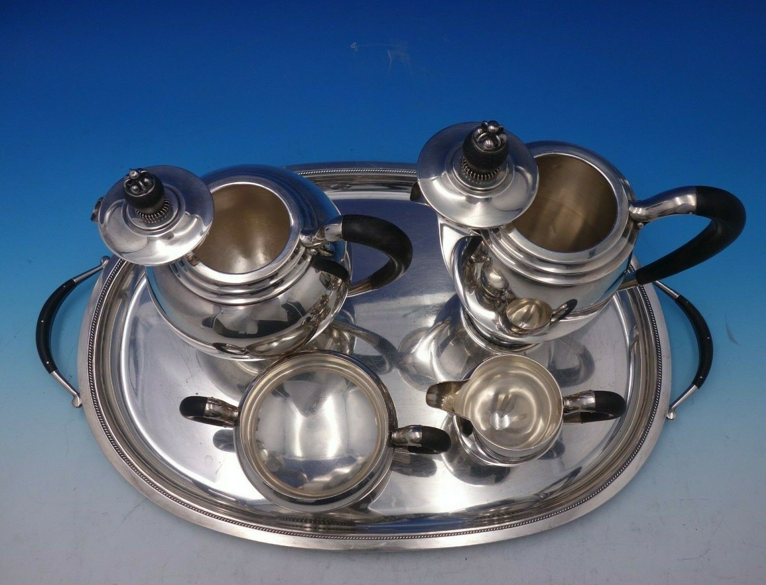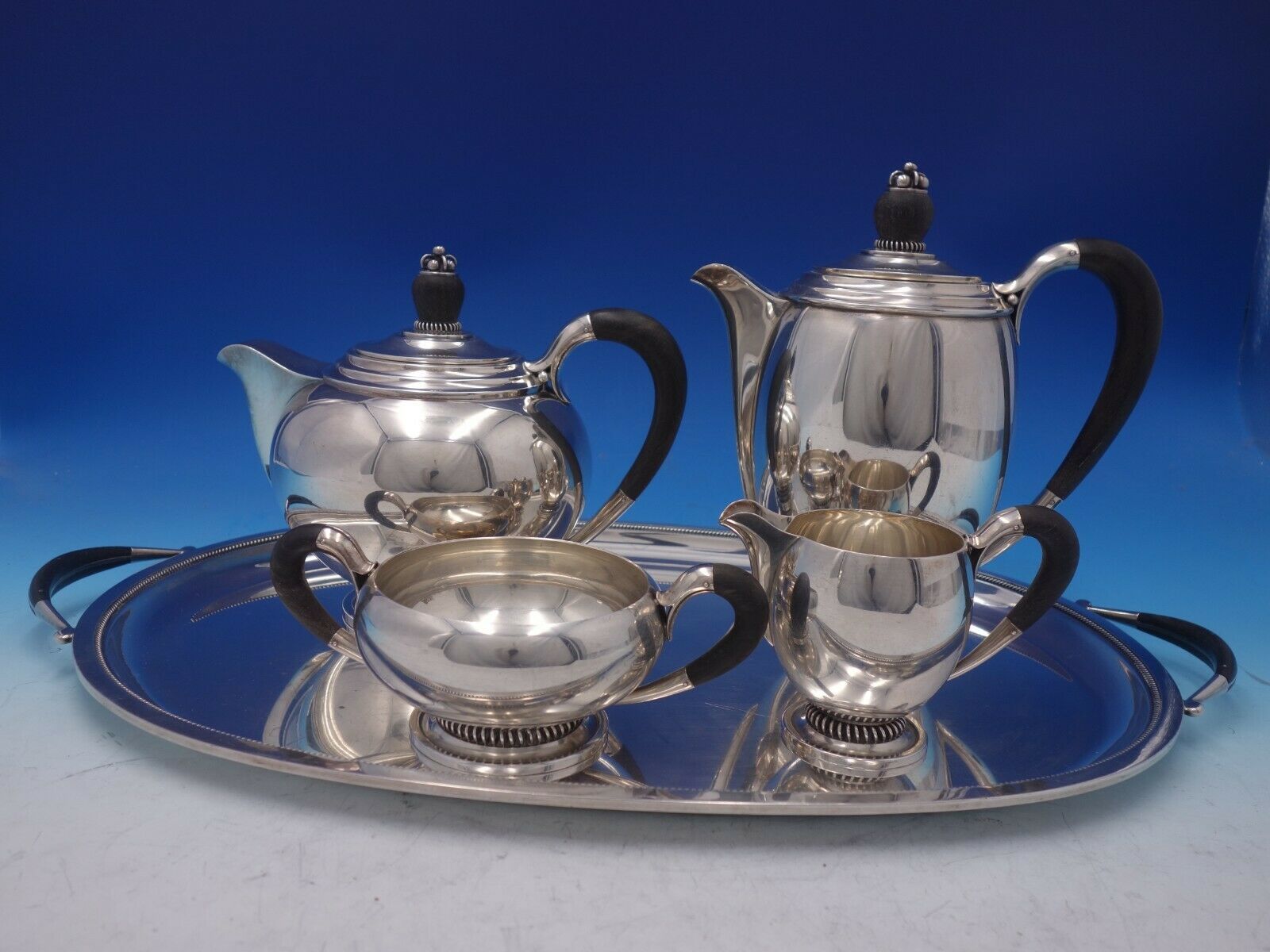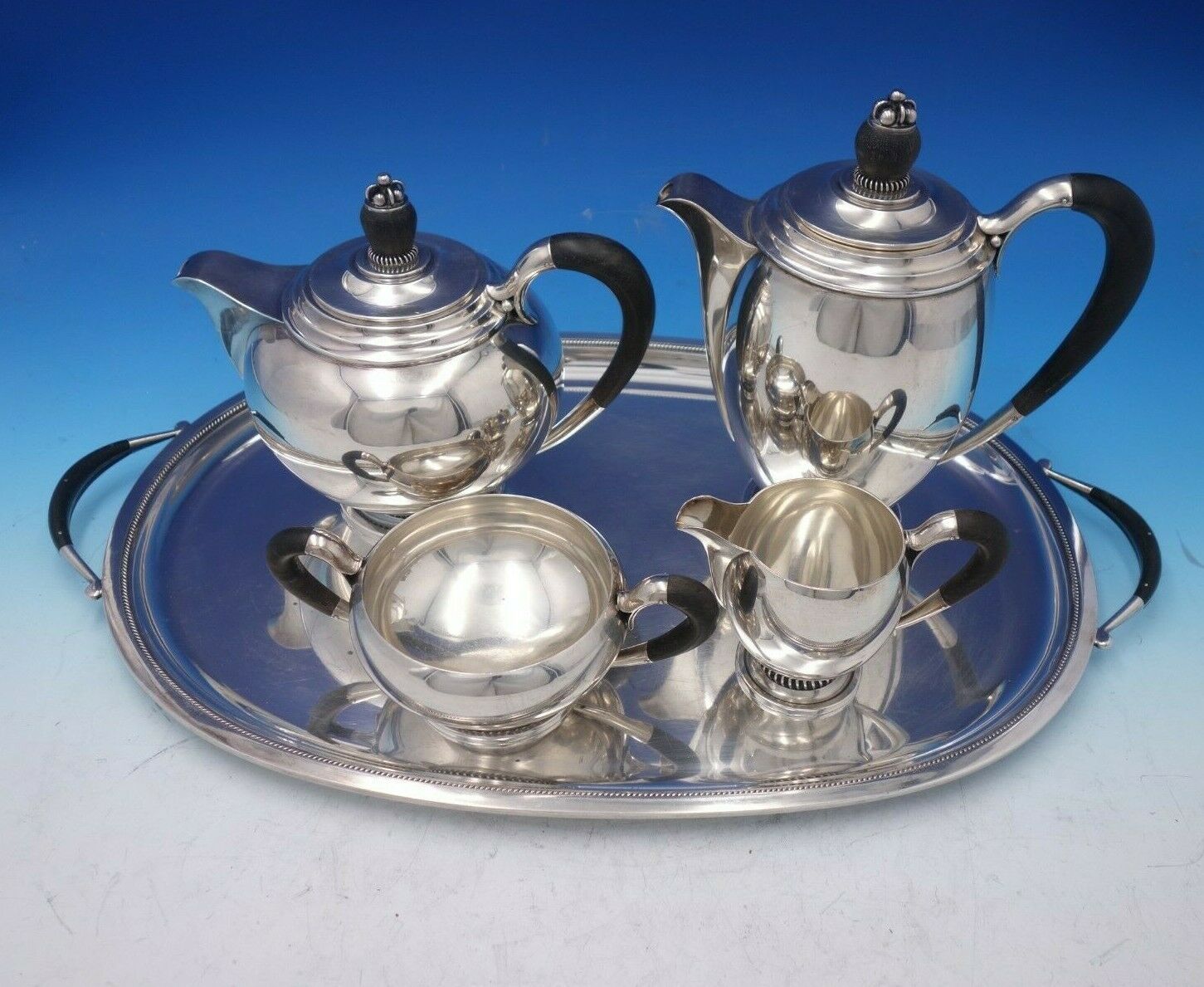 - Hermann Danish Sterling Silver Tea Set 5pc with Ebony #X52 (#5272)