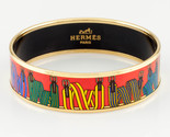 - Hermes Enamel "Les Sangles" Gold-Plated Bangle 3/4" Wide