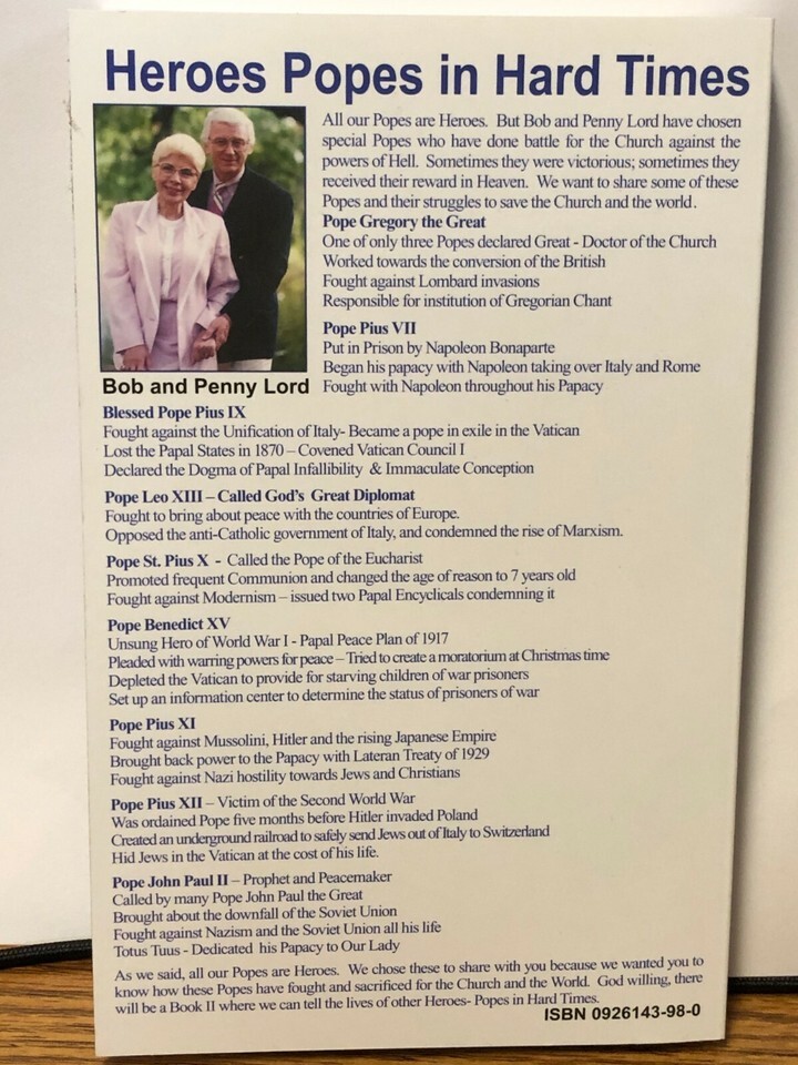 - Heroes, Popes in Hard Times, Book by Bob and Penny Lord, New