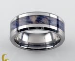 Herren -Wolframring mit blauem Marmor Colored Center Band Große 8.5