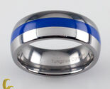- Herren Wolframkarbid Ring W / Blau Mitte Streifen Größe 8