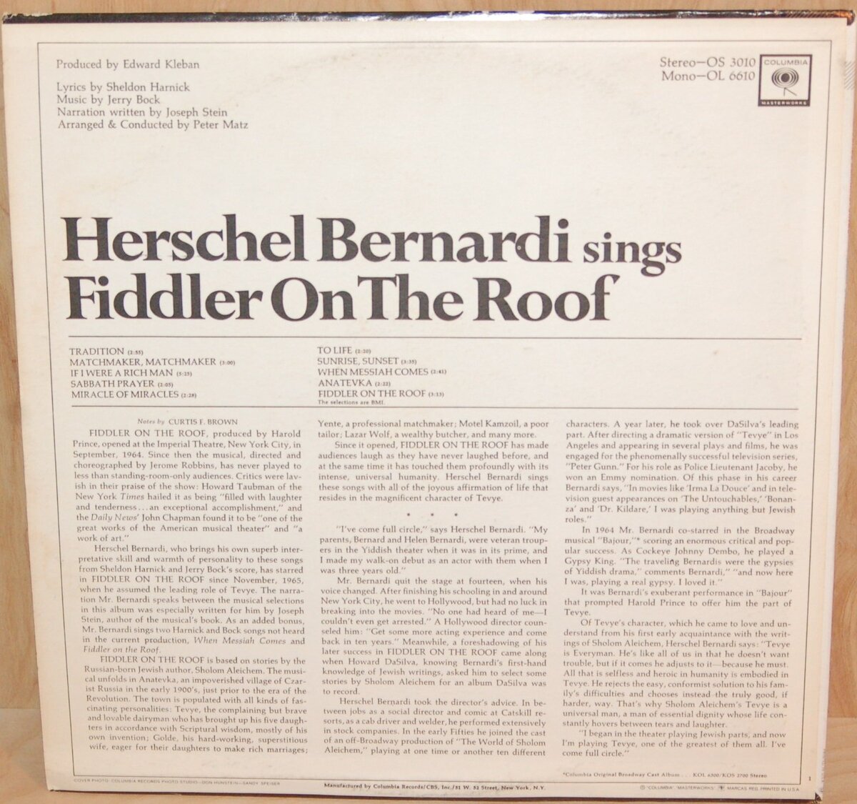 - Herschel Bernardi Sings Fiddler On The Roof [Vinyl]