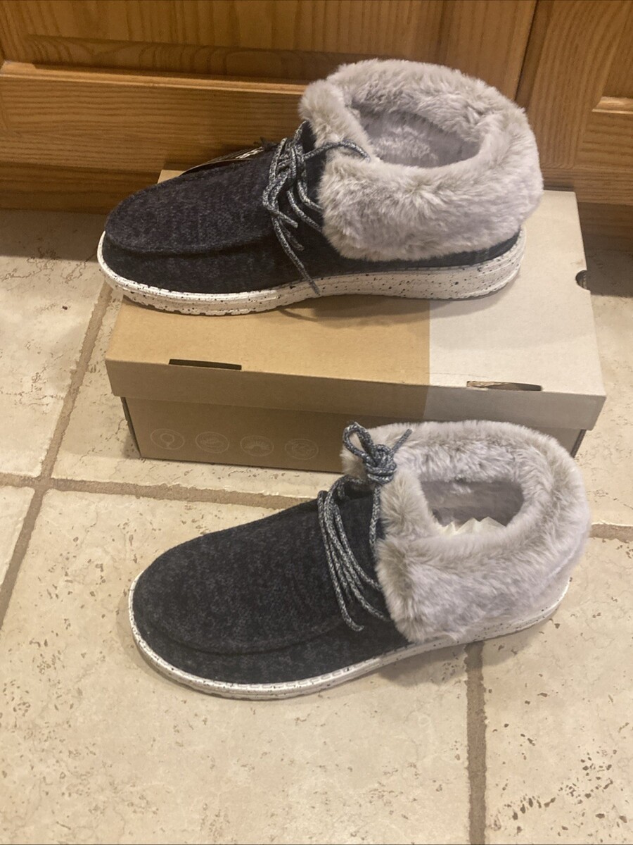 Hey Dude Britt Navy Casual Booties Loafers Womens 9 Blue Gray Lace Up
