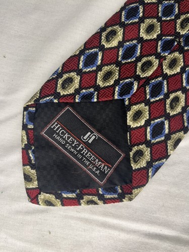 - Hickey Freeman Tie Red Good Blue Italian Silk USA Made