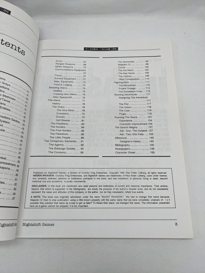 Hidden Invasion Cinematic Adventure RPG Book Nightshift Games. Combined Shipping (for USA Customers Only)