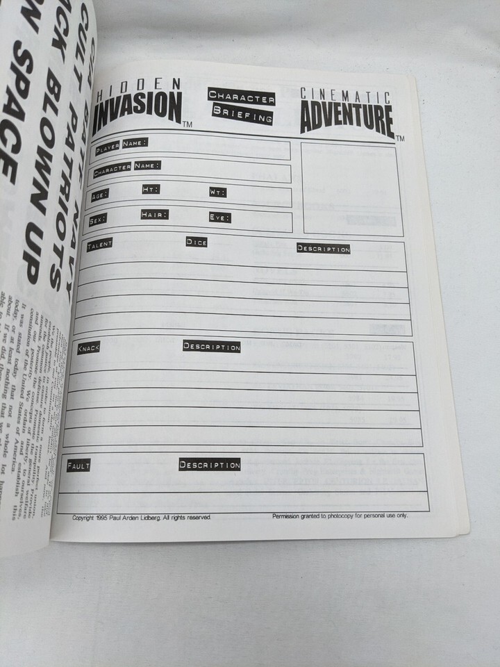 - Hidden Invasion Cinematic Adventure RPG Book Nightshift Games