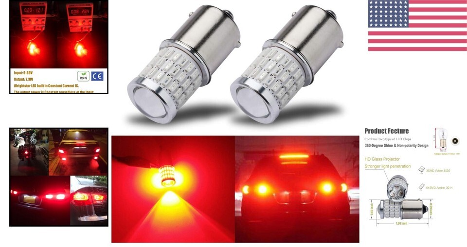 - High Brightness 1156 1141 BA15S LEDs - Super Bright Red Lights, 30,000 Hrs Life