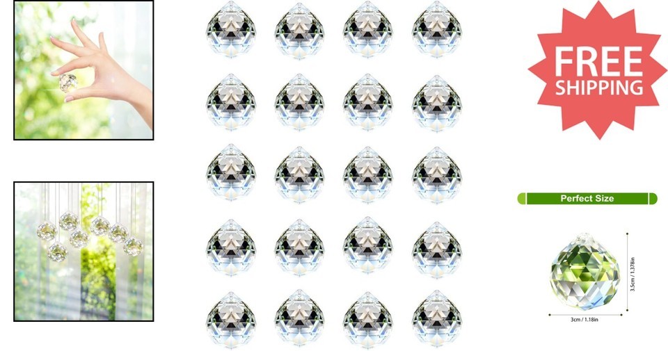Transform your space with our 20-pack of exquisite 30mm (1.2-inch) crystal ball prisms, presented in a sleek black gift box. Crafted from crystal glass?not acrylic or plastic?these prisms boast exceptional clarity and create stunning rainbow effects when illuminated. Easy to hang with a small top hole using your own rope, they are perfect for adding sparkle to home, office, or garden windows, Feng Shui arrangements, chandeliers, wedding decor, Christmas trees, or any craft projects. A thoughtful gift for friends and family, these crystal prisms will elevate your decor and lighting displays. To ensure fast and reliable delivery, we work with multiple fulfillment partners and suppliers. Depending on availability and location, your order may ship from different warehouses or arrive in packaging that varies from item to item. Tracking details are typically provided shortly after shipment, and customer satisfaction remains our top priority. Please note that due to carrier policies and regional regulations, certain items may not be eligible for delivery to specific states or territories.