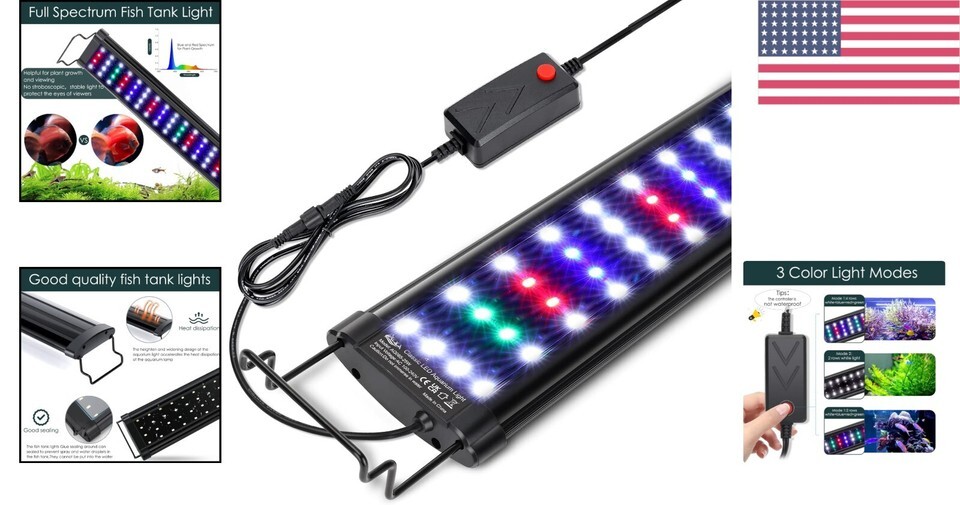 - High-Definition 1055 Lumen Aquarium LED Light, 3 Color Modes, Adjustable Size