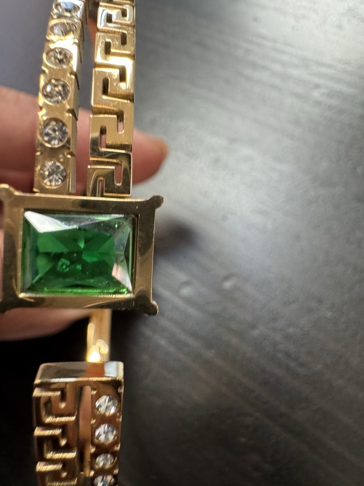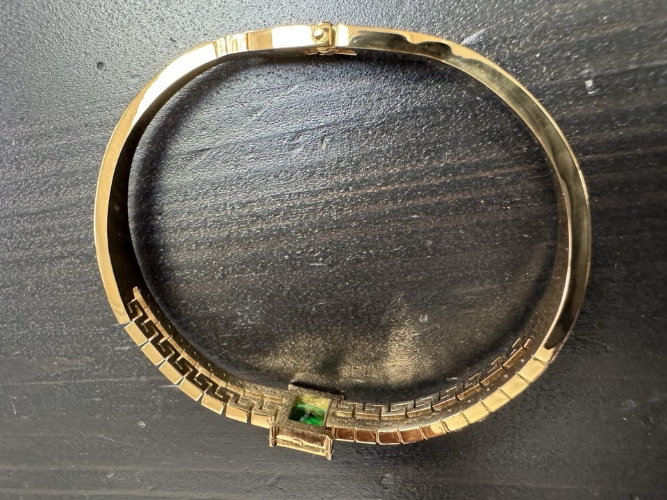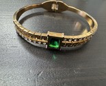 High Polish Gold And Green Gem Stone Bracelet Bangle Open Cuff As In Pictures