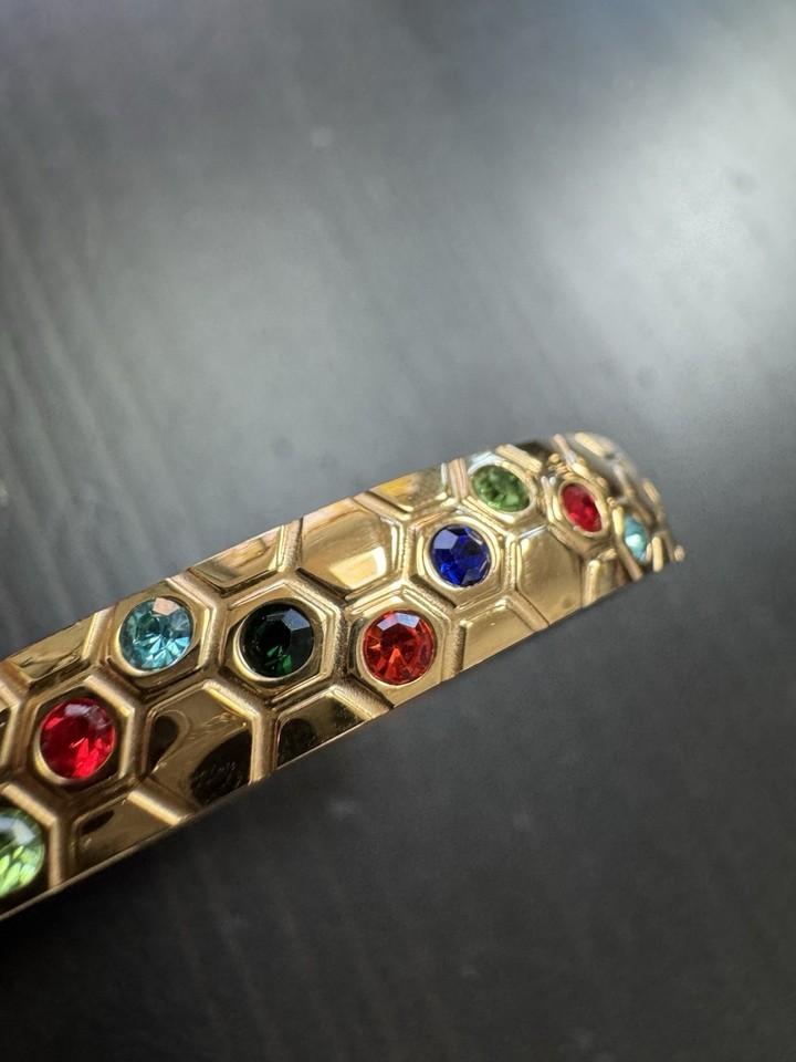 - High Polish Gold And Multi Gem Stones Bracelet Bangle Open Cuff As In Pictures