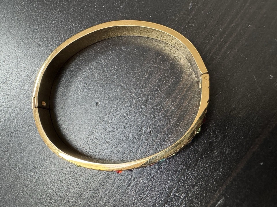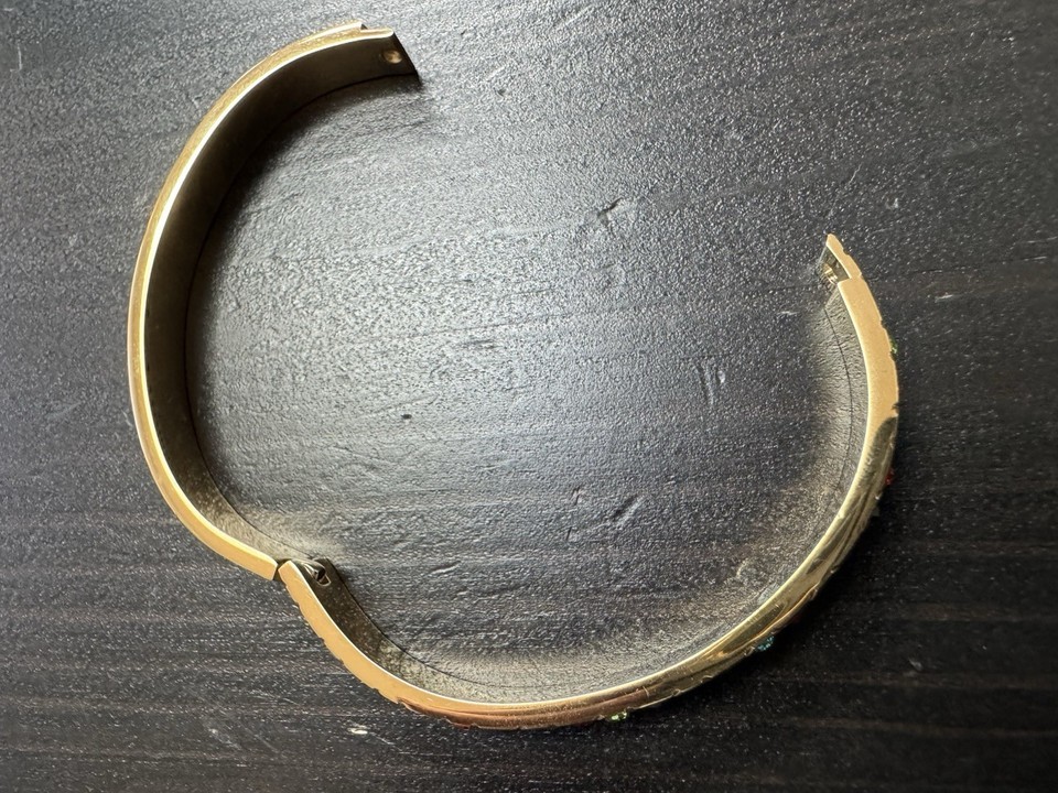 High Polish Gold And Multi Gem Stones Bracelet Bangle Open Cuff As In Pictures