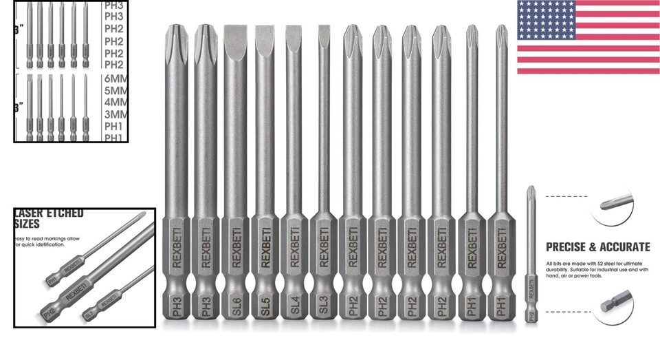 - High Precision 12-Piece Magnetic Screwdriver Bit Set - S2 Steel Construction