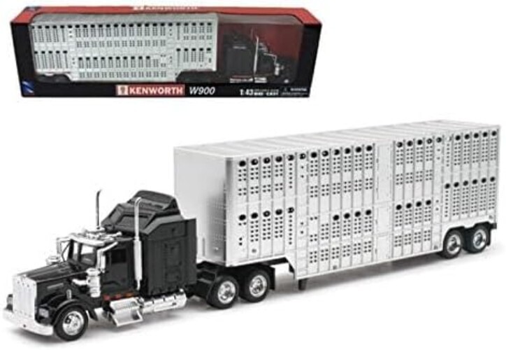 Elevate your collectible display with this exquisite 1:43 scale diecast Kenworth W900 featuring a stunning livestock trailer. Crafted by New-Ray Toys, this model offers remarkable detail and precision, perfect for enthusiasts and collectors alike.