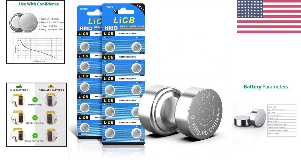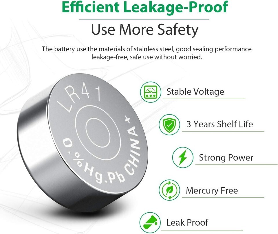 Long-Lasting Power: Experience superior battery life with LR41 cells, capable of delivering a full charge of 1.5 volts.