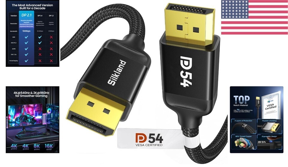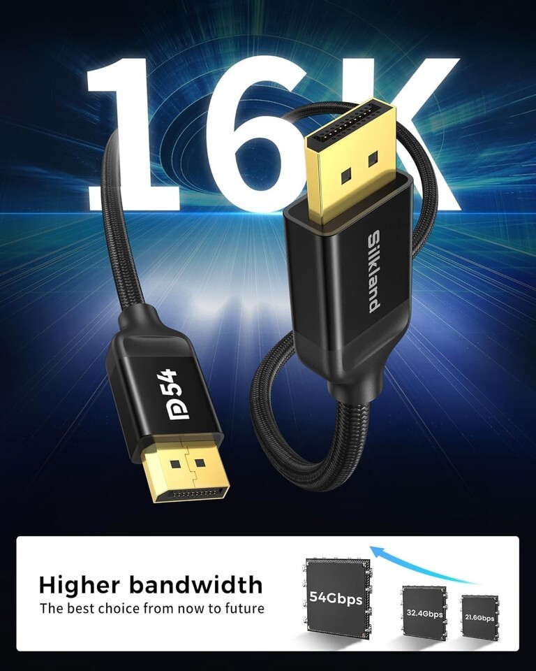 VESA Certified 16K Resolution: Experience unparalleled clarity with support for 16K (15360*8640) @60Hz with DSC, 8K @120Hz, and 4K up to 240Hz. Backwards compatible with DisplayPort versions 2.0, 1.4, 1.3, 1.2, 1.2a, 1.1, and 1.0.