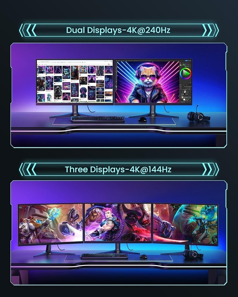 Dynamic HDR High Bandwidth: Enjoy enhanced visuals and dark scene details with a bandwidth of up to 54Gbps and HBR3 support.