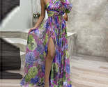 - High Split Loose Hem One Shoulder Print Beach Party Dress