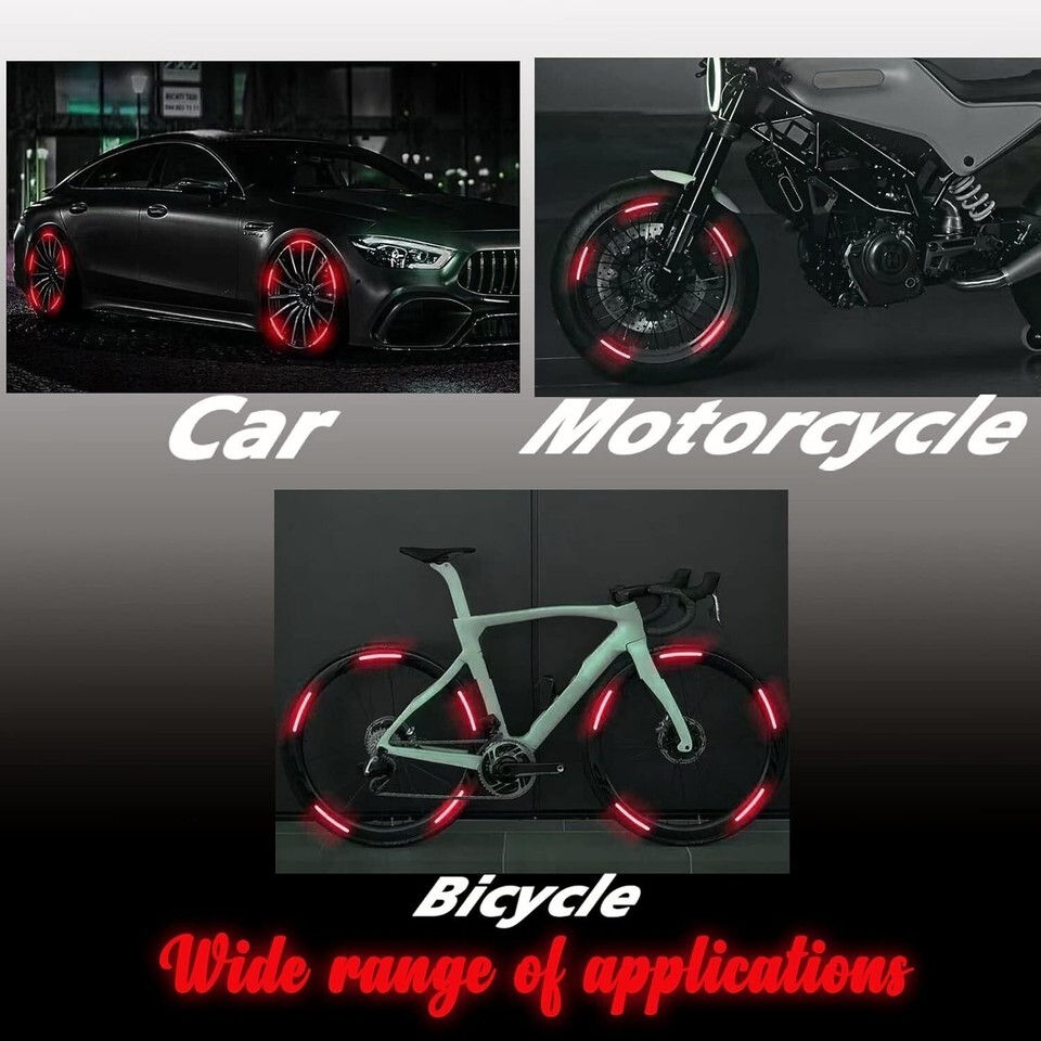 Vesatile Application: These univesal stickes can be applied to ca wheels, motocycles, bicycles, scootes, helmets, and moe, poviding safety wheeve you go.